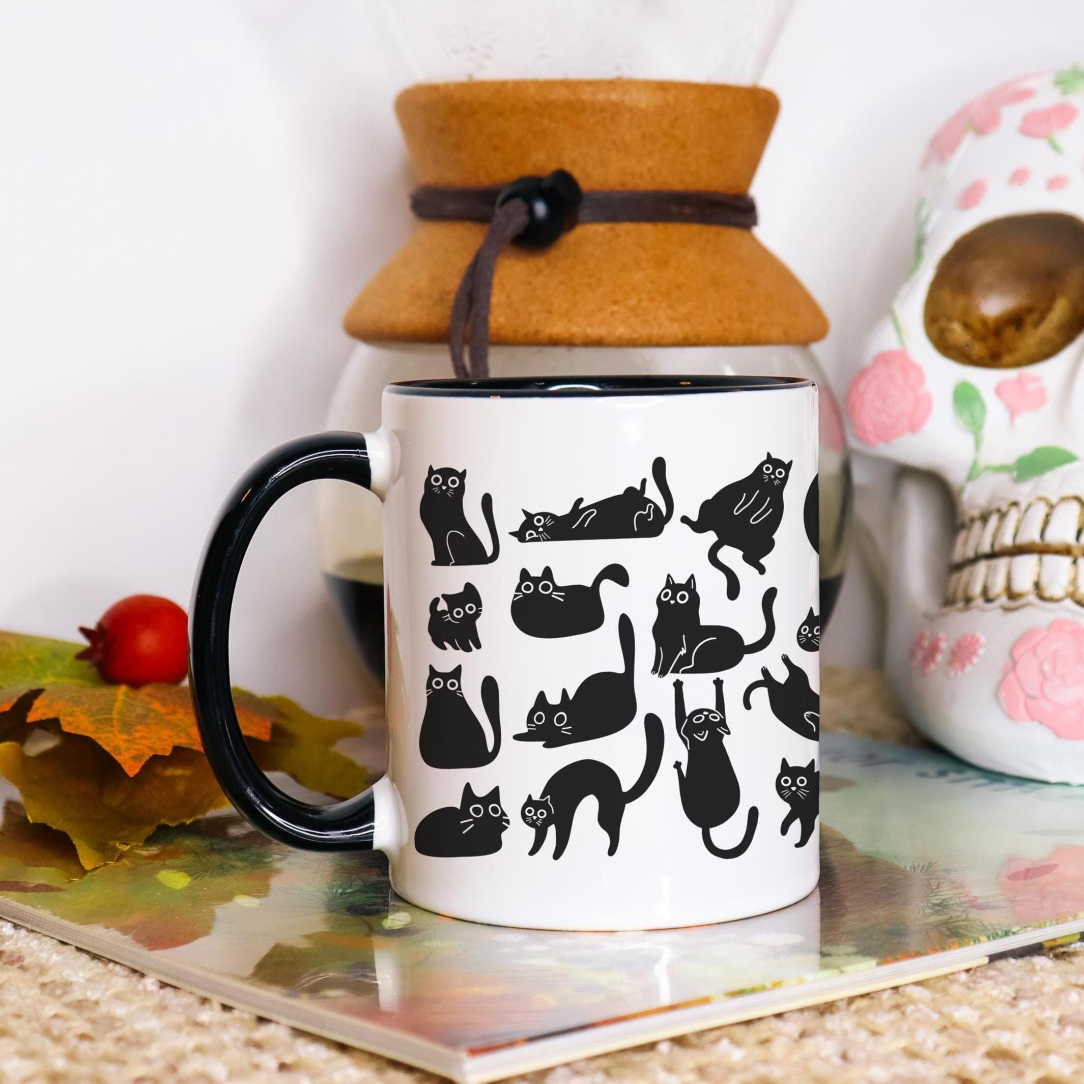Silly Black Cat Accent Mug, Cat Coffee Mug, Black Cat Coffee Cup, Cat Lover Gifts, Halloween Cats, B...