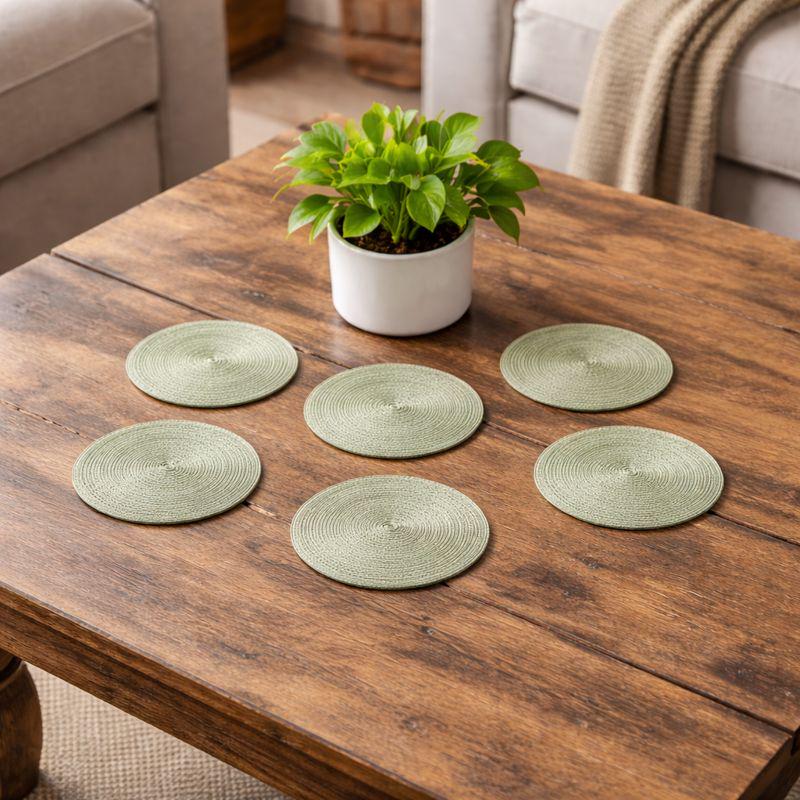Set of 6 Green Woven Round Coasters, Boho Table Decor, Rustic Coffe...