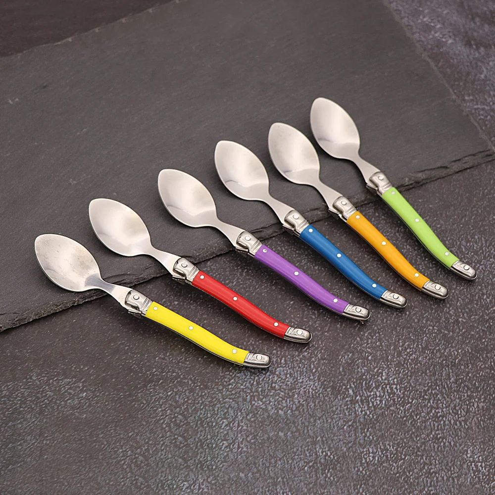 6pcs Stainless Steel Laguiole Coffee Spoons Set Plastic Handle Spoon Set for Tea Tableware Colorful ...