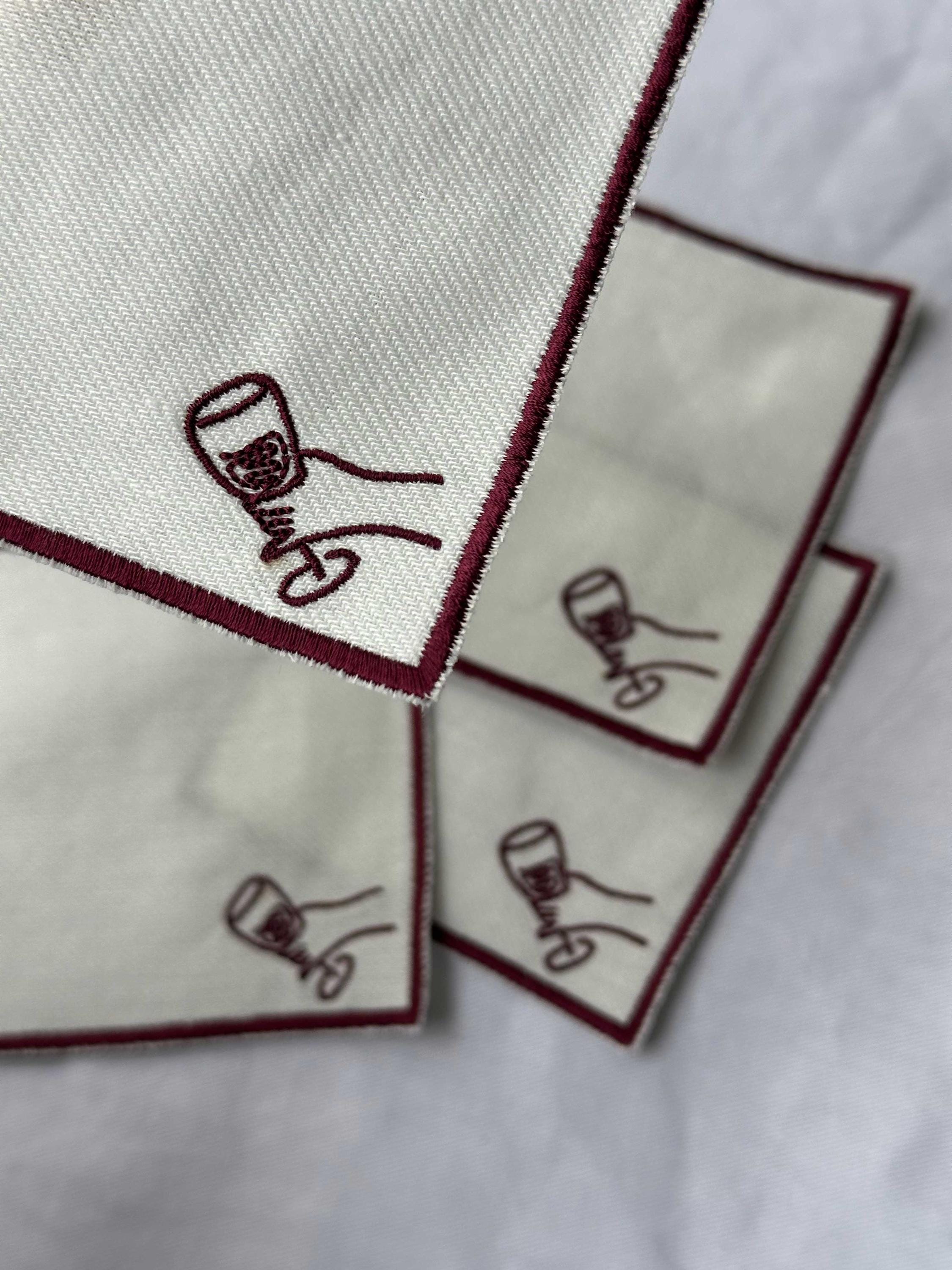 Embroidered Wine Cocktail Coasters Napkins, Anthropologie Oliver Bo...