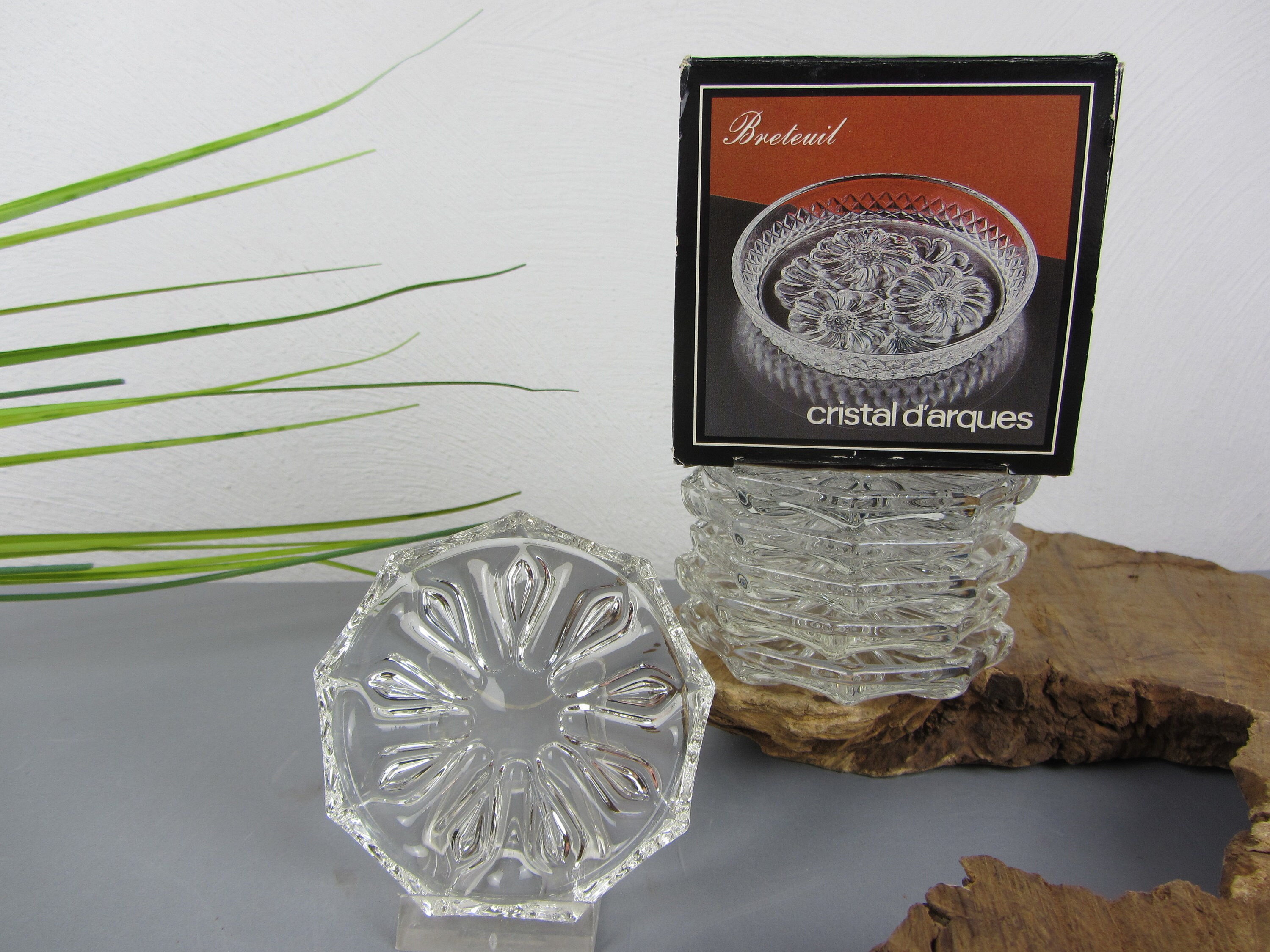6 genuine lead crystal coasters by Cristal d'Arques, 1970s glass co...