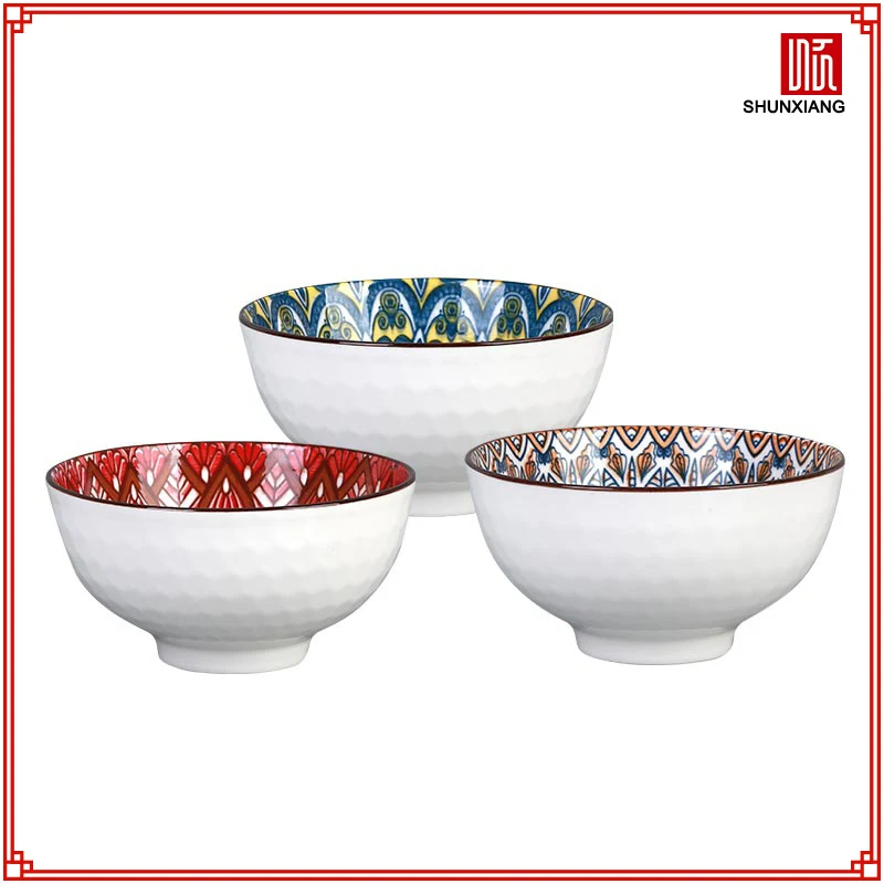 3Pcs Ceramic Bowl Set 4.5-Inch Rice Bowl Microwave Safe Home Dinning & Restaurant High Quality C...