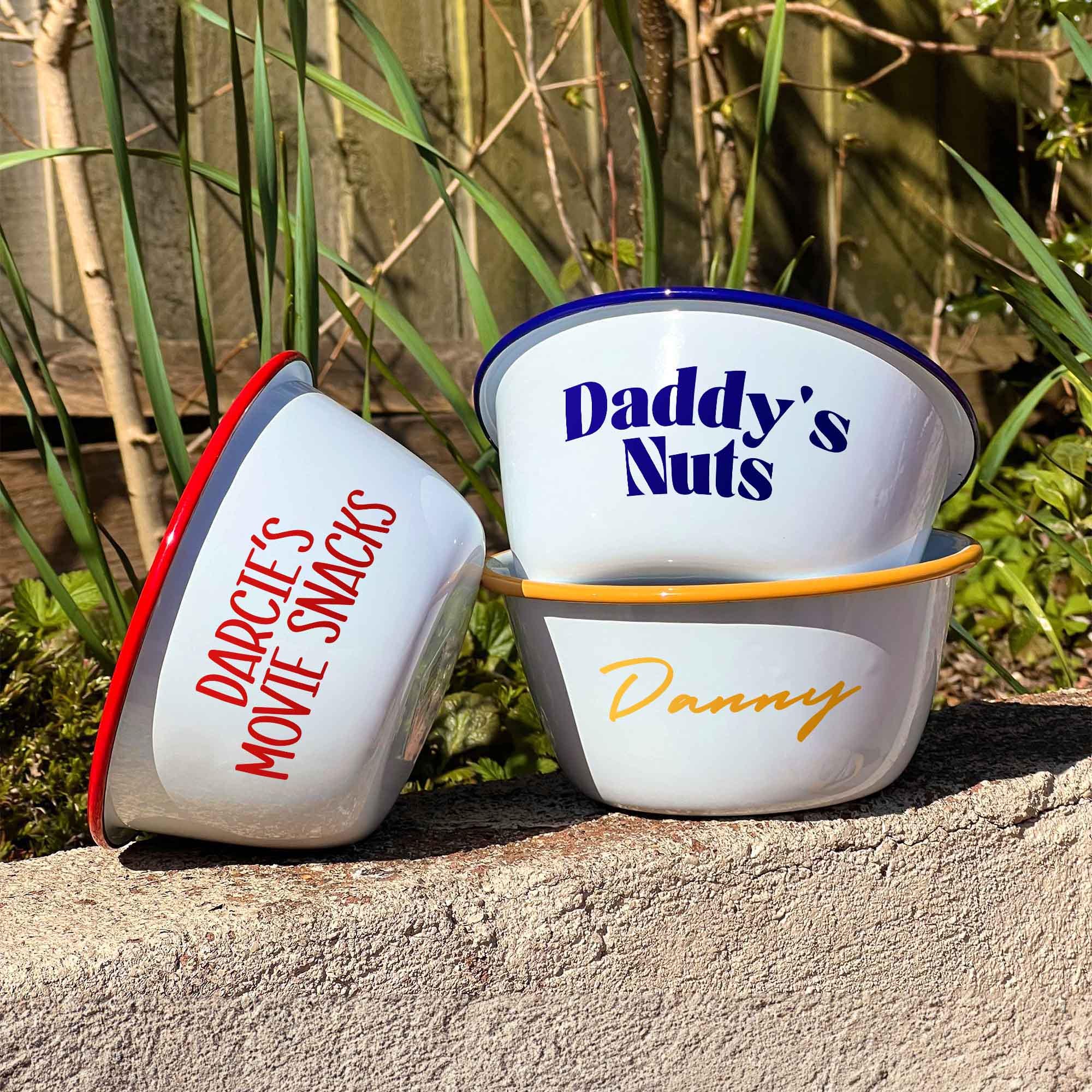 Personalised Enamel Bowl, Dad's Nuts Bowl, Daddy's Cereal Bowl, Cus...