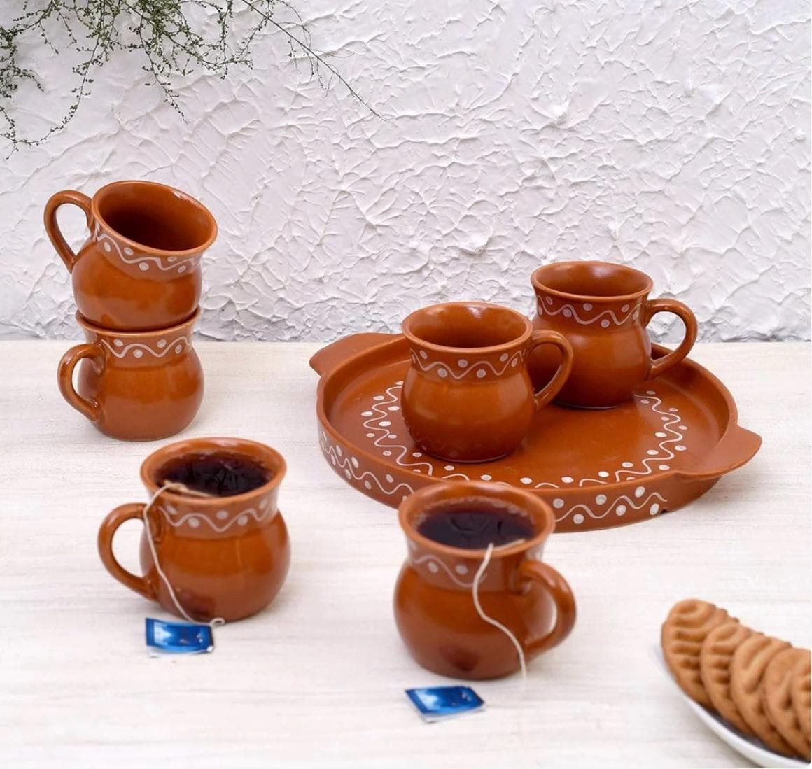 Handpainted ceramic Tea cups set with Tray | Cutting chai cups set ...