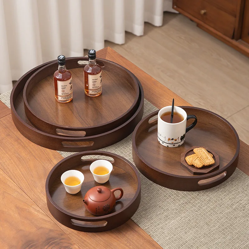 Wholesale Round Coffee Serving Tray Household Wood Tea Cup Bread St...