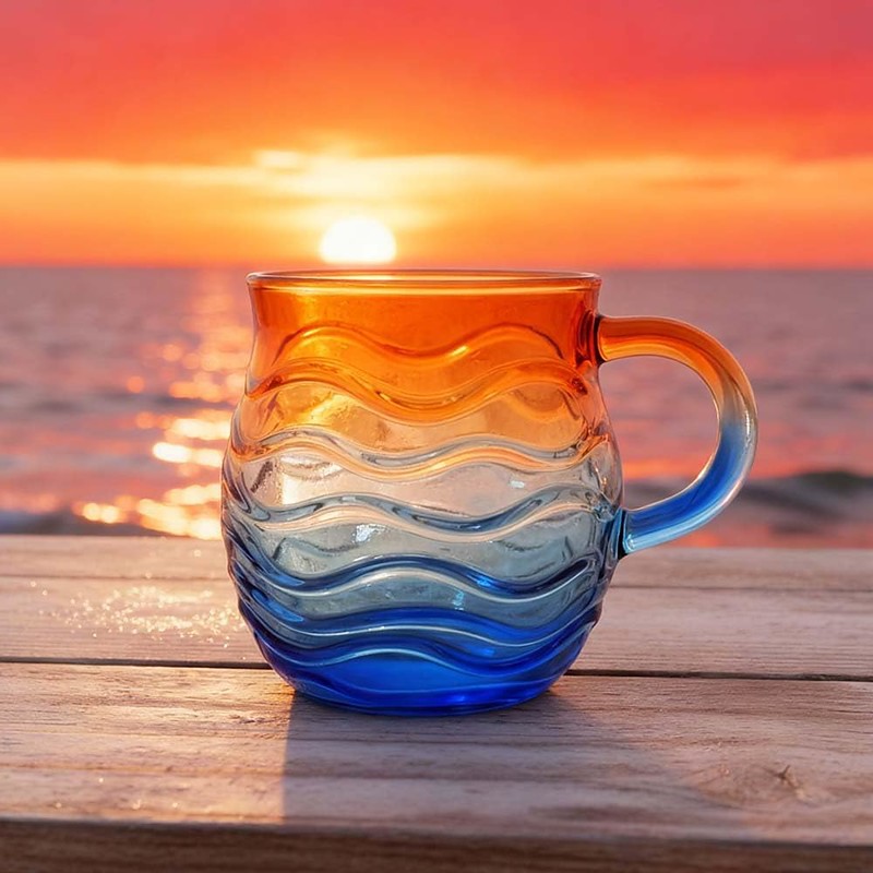 Sea Glass Sundown Mug 12 Oz, Handcrafted Ocean Wave Pattern Coastal...