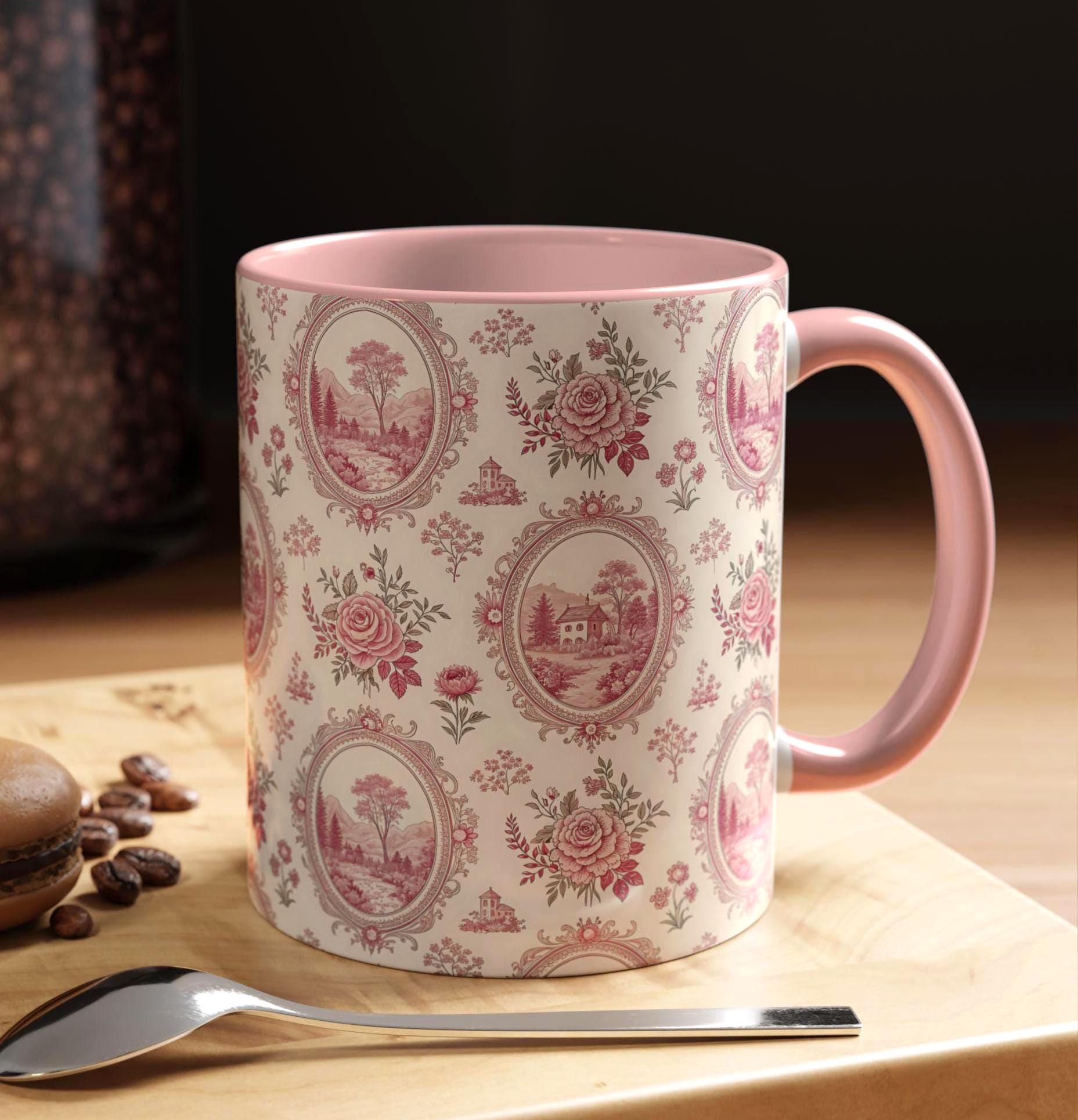 Vintage Pink Toile Rose Pattern Mug | Accent Coffee Mug