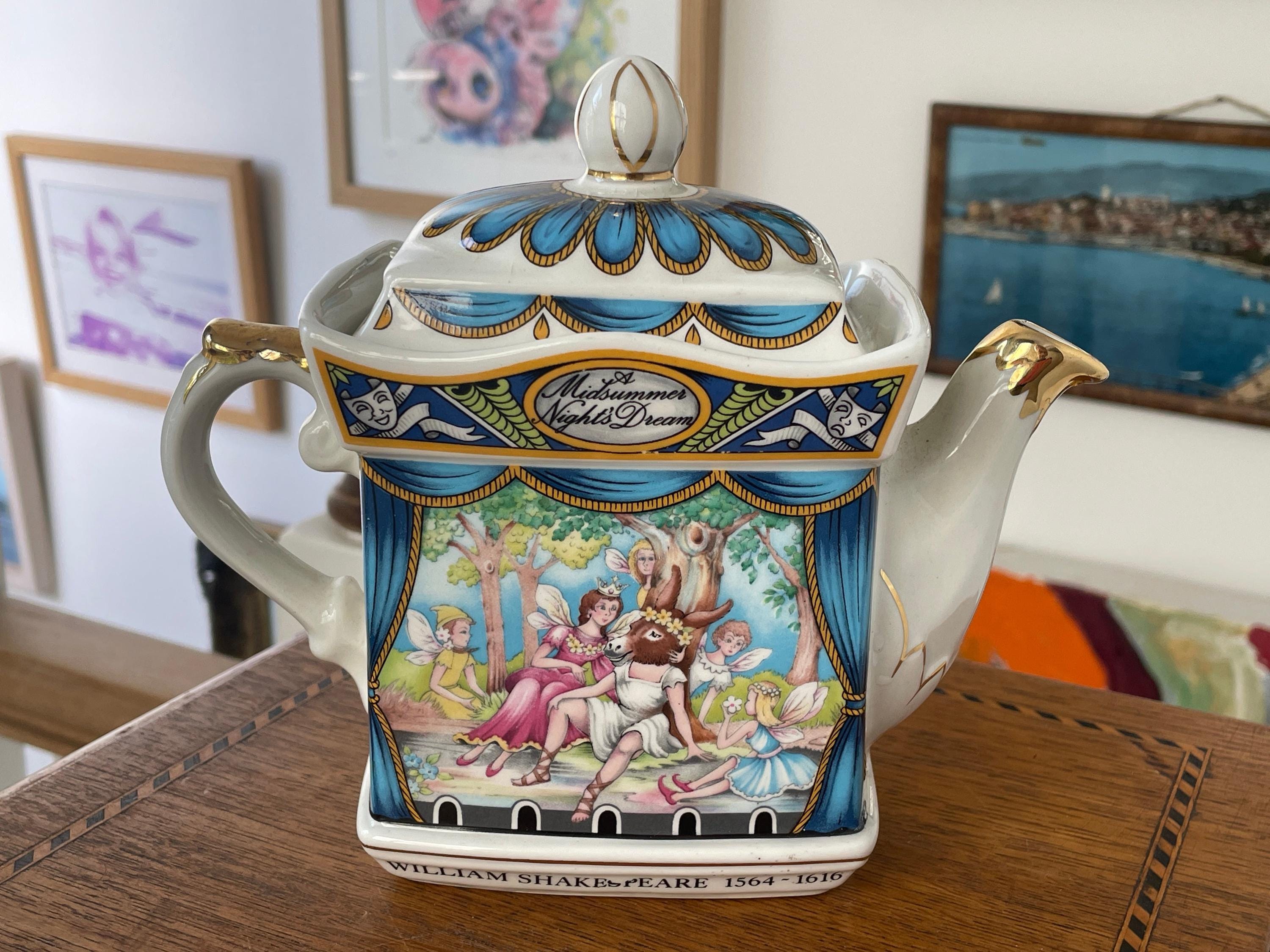 A vintage Sadler teapot from the Shakespeare series, decorated with a scene from A Midsummer Night's...