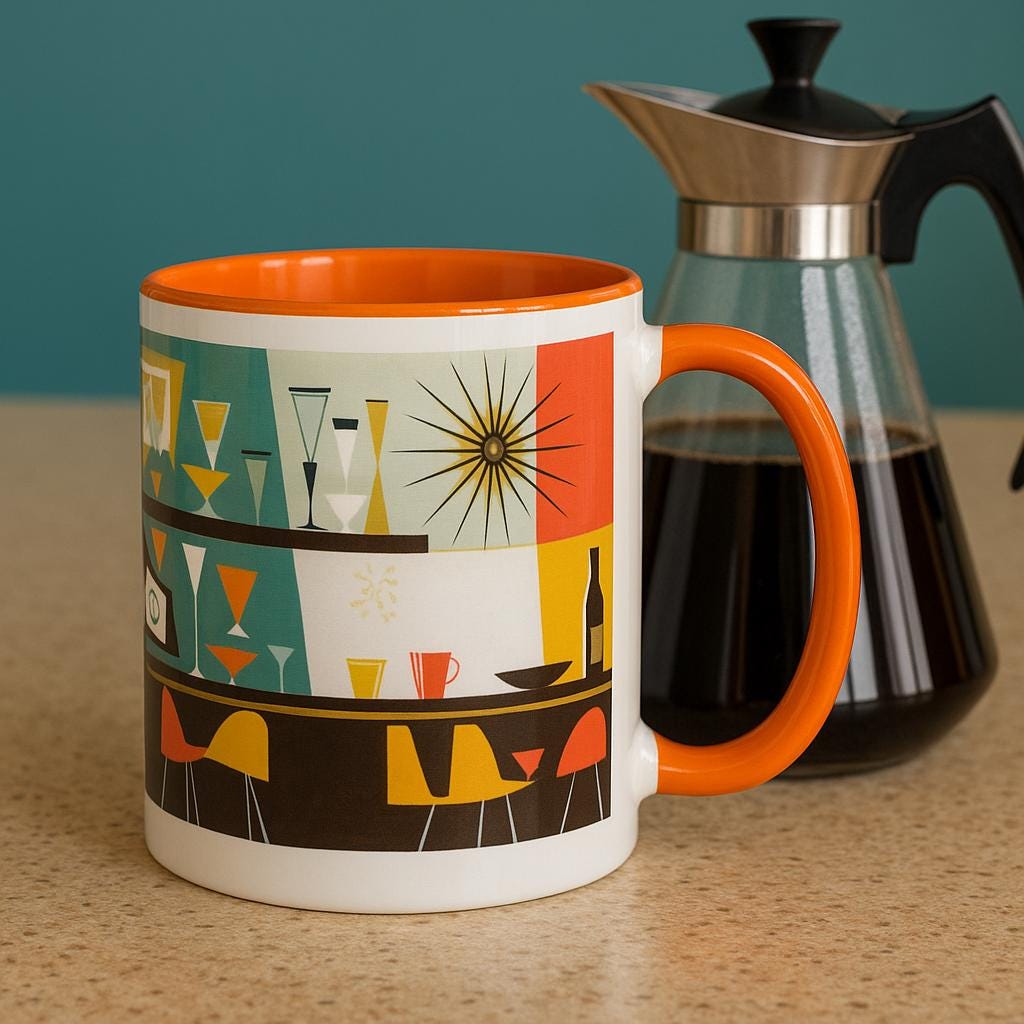 Mid-Century Modern Coffee Mug | Retro Bar Scene Drinkware