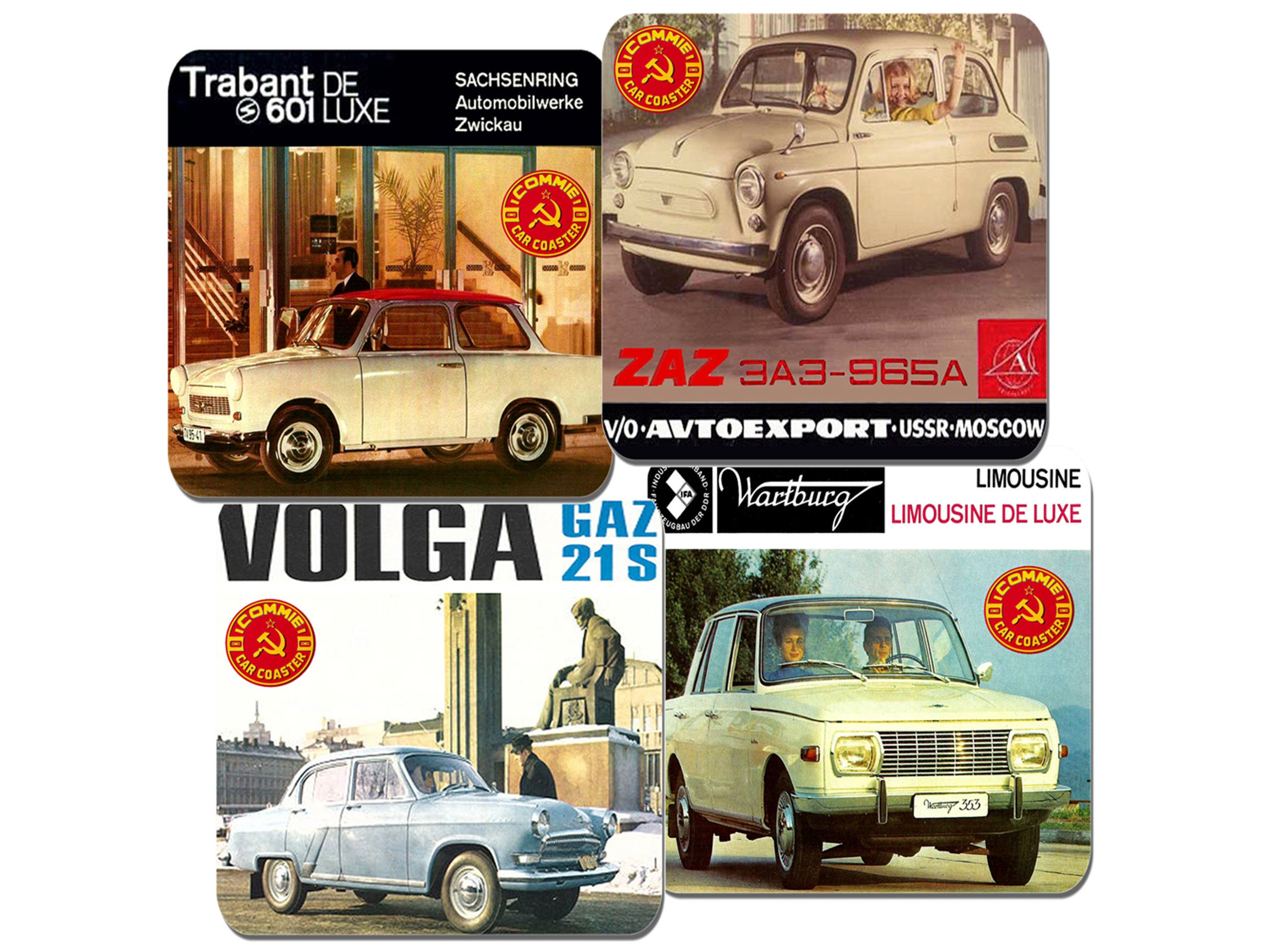 "Commie Cars Coaster Set Of 4. Mighty machines from behind the iron curtain that left car manuf...