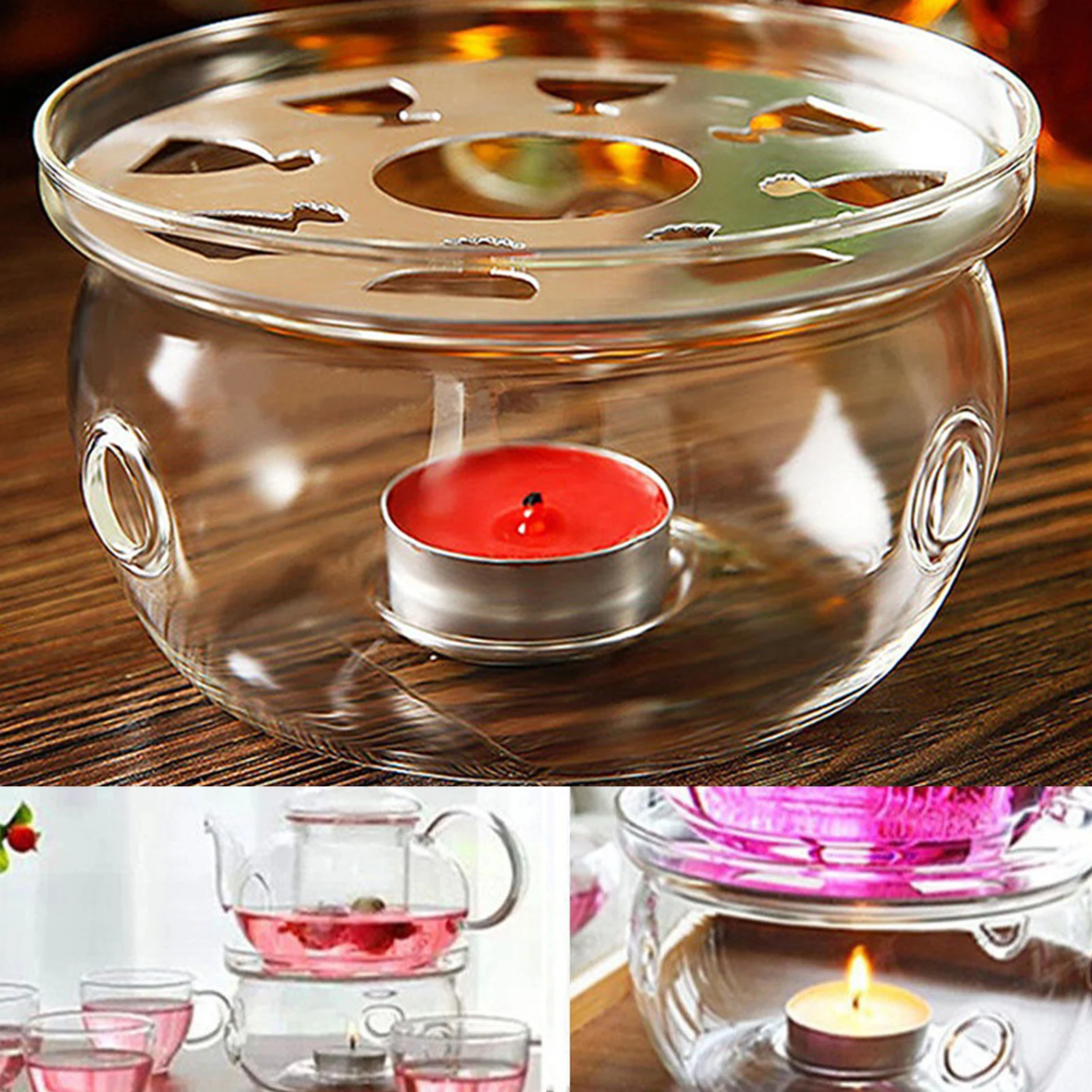 Round Teapot Warmer Ramadan Teapot Heater Base Candle Holder Clear ...