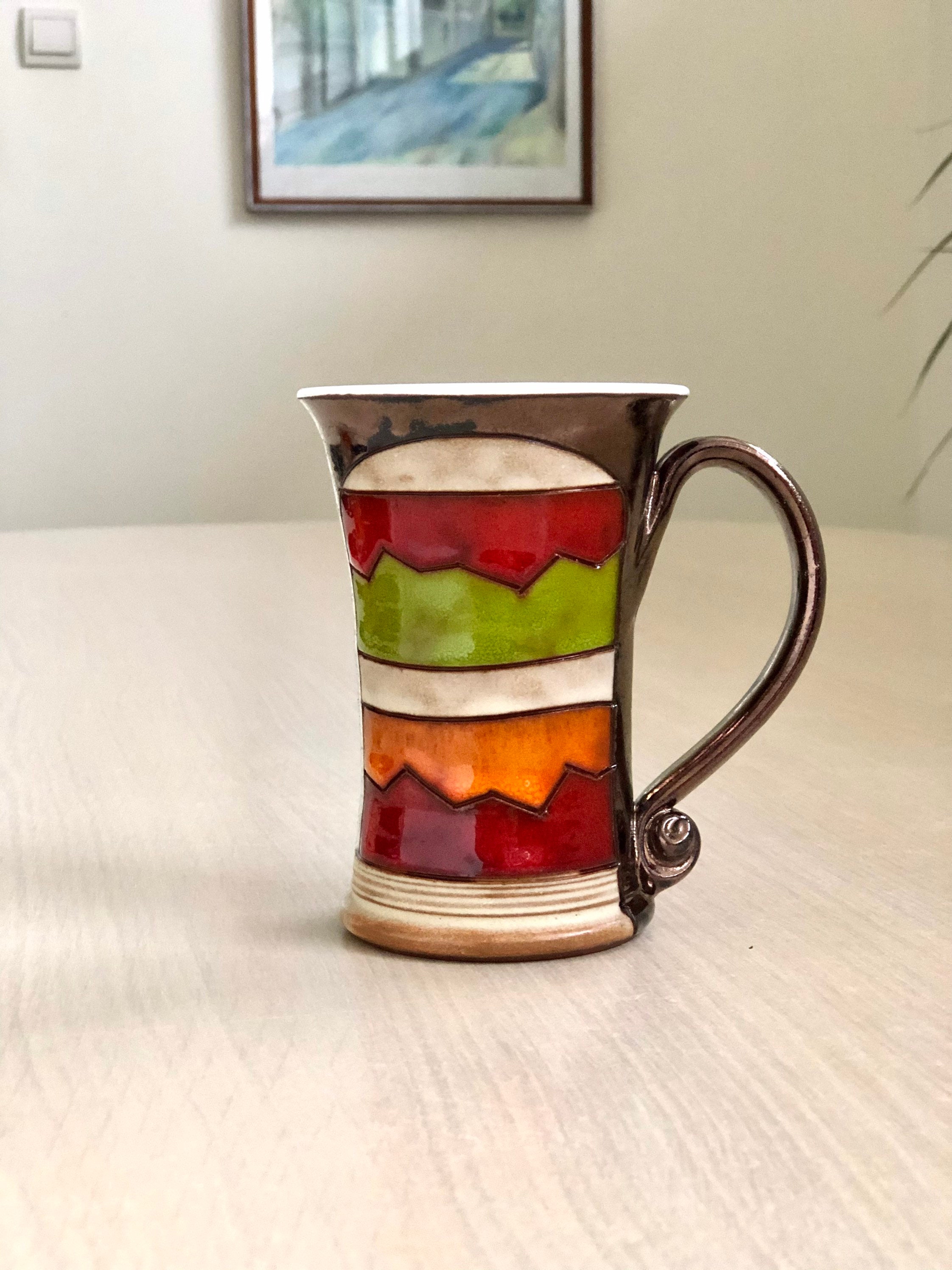 Rainbow Coffee Mug, Wheel Thrown Pottery Tea Cup, Ceramic Coffee Cu...