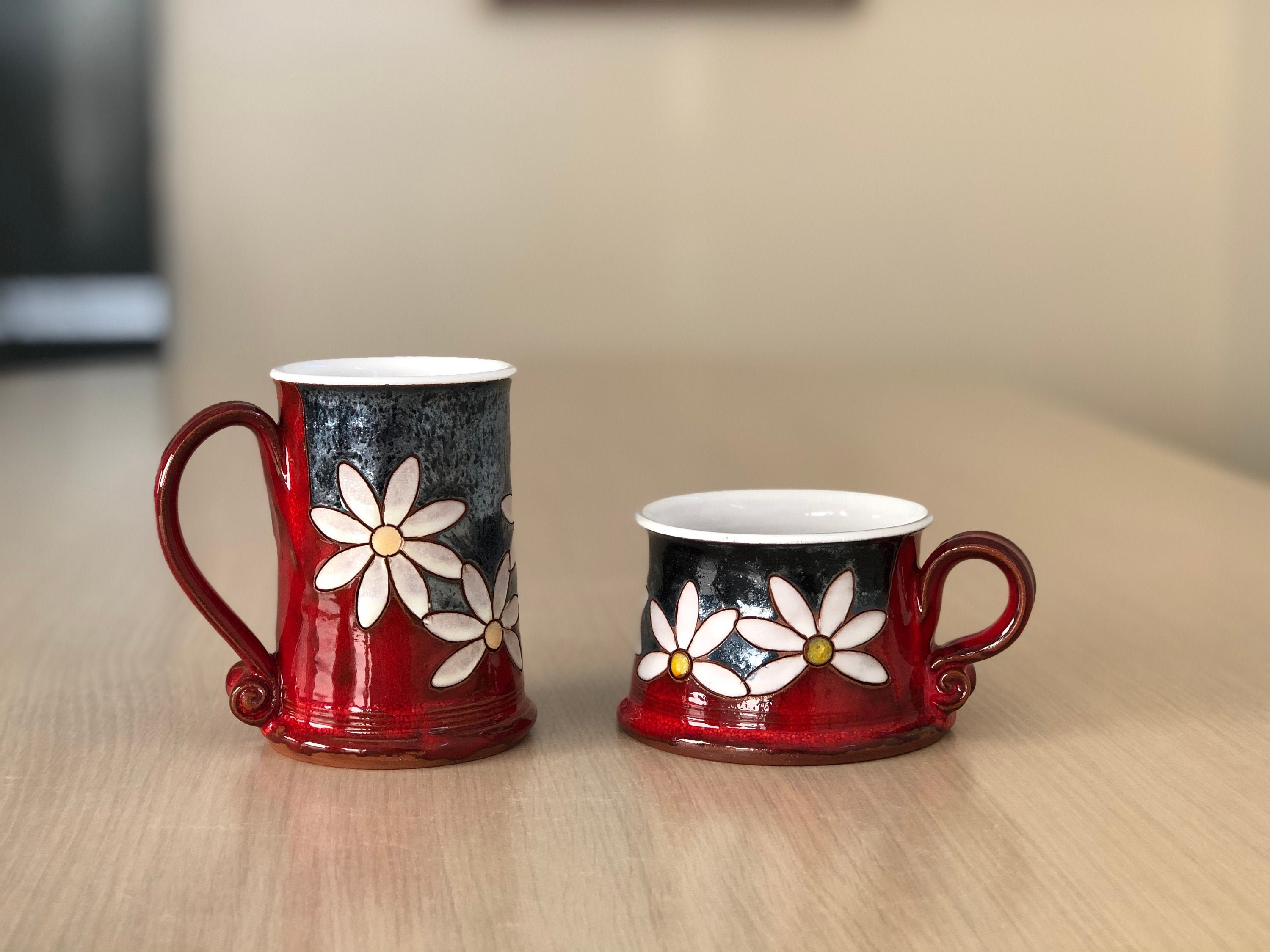 Handmade unique coffee or tea mug with Daisies. Wheel thrown pottery cup , Tea mug THIS LISTING IS F...