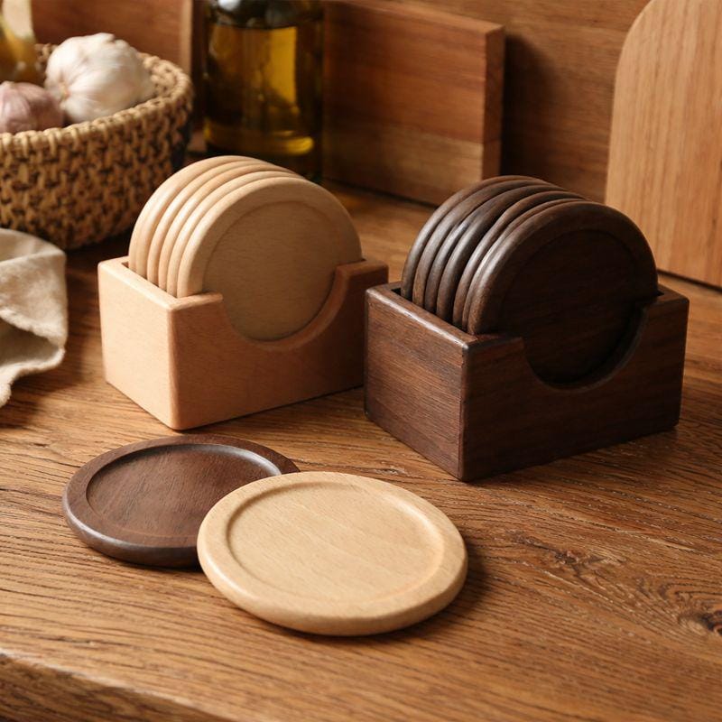 Walnut Wood Coaster Set - Set of 6 Bring warmth, elegance, and everyday practicality to your home wi...