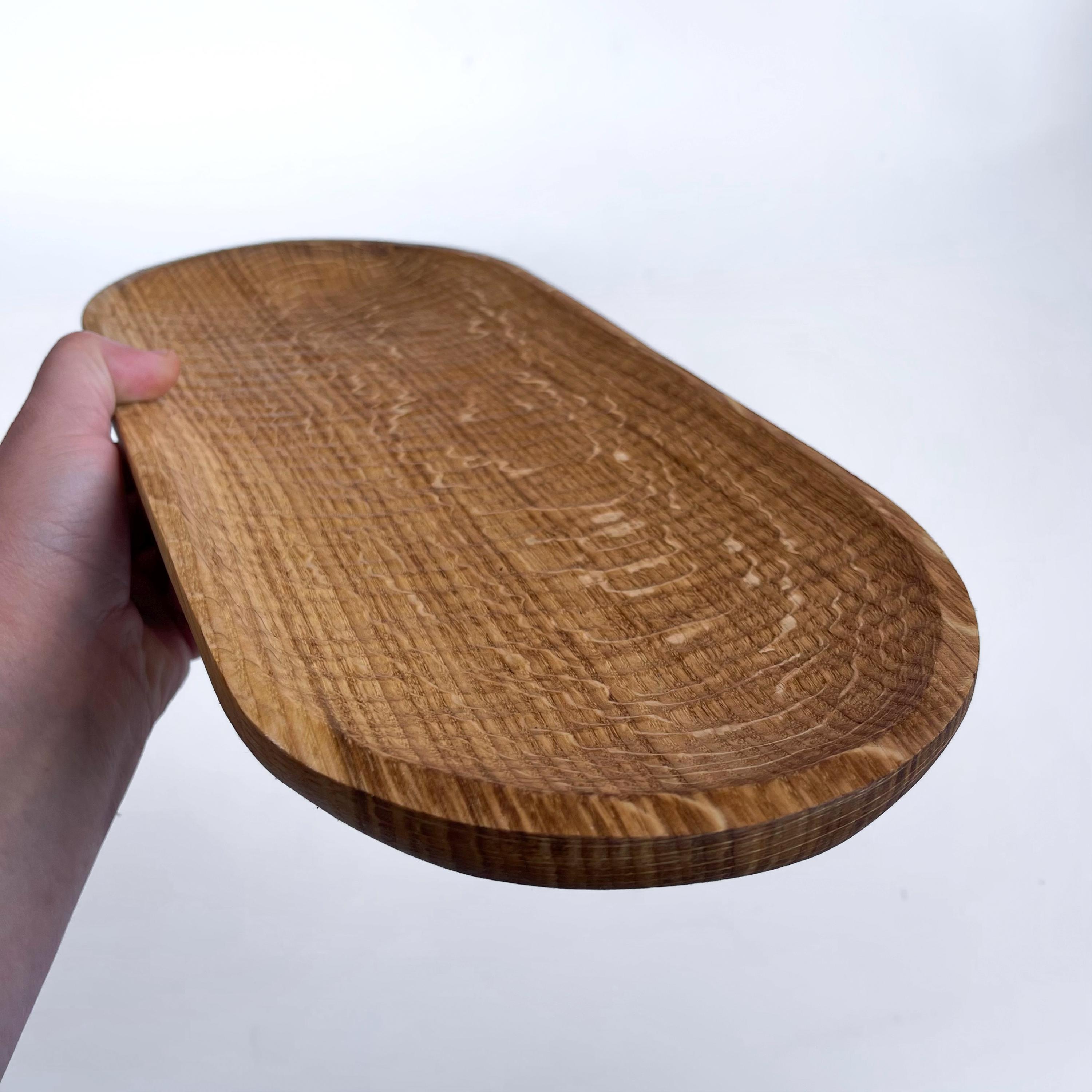 Hand Carved Oak Dough Bowl, Rustic Oval Wooden Tray, Coffee Table D...
