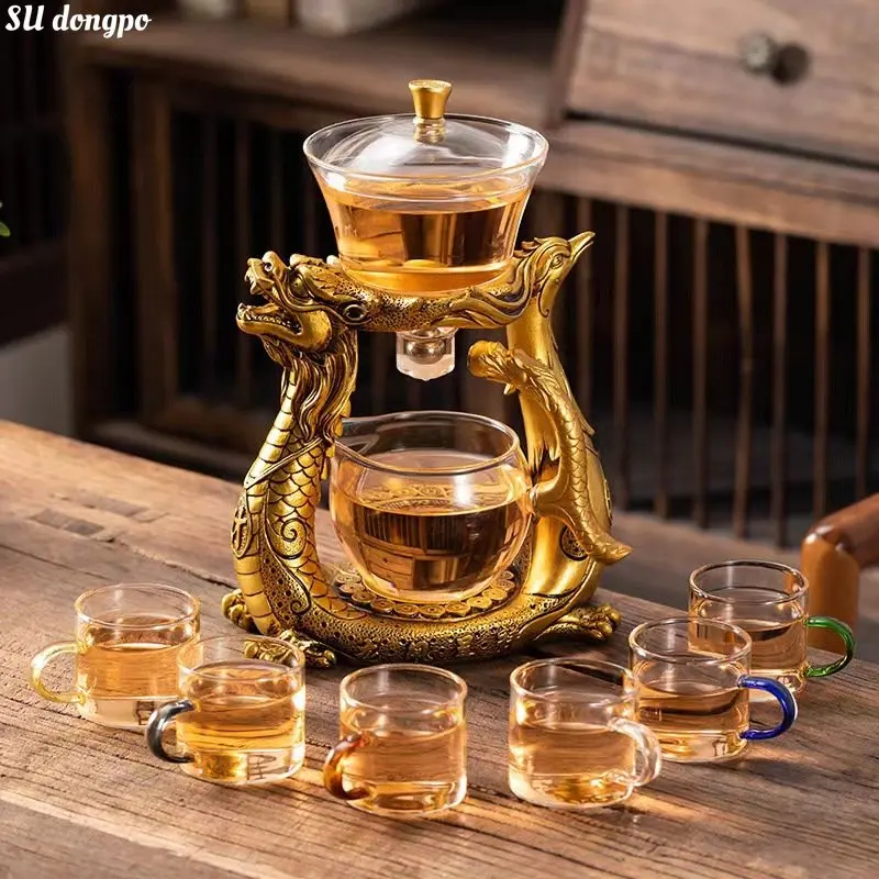 Dragon Phoenix Glass Lazy Man Automatic Tea Set Tea Cup Set Househo...