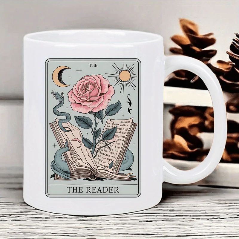The Reader - Elegant Ceramic Mug with Tarot Card Design, Perfect Gift for Book Lovers and Mystical E...