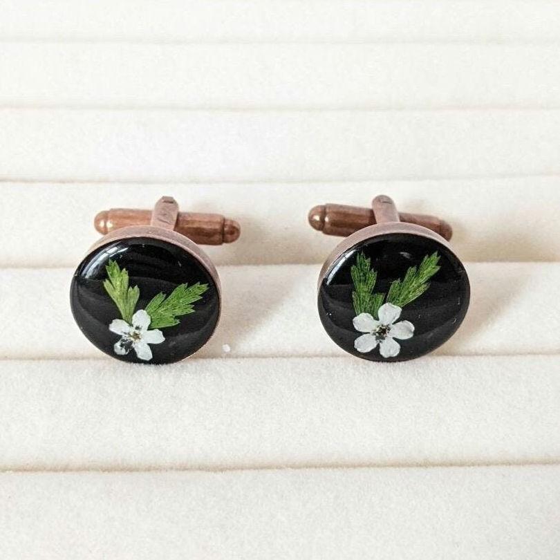Real Forget Me Not Flower and Fern Cufflinks, Pink Flower Cufflinks...