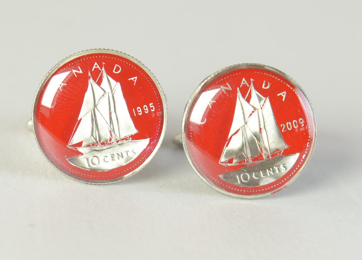 For those who cherish the allure of vintage coin jewelry, these hand painted Canadian coin cufflinks...