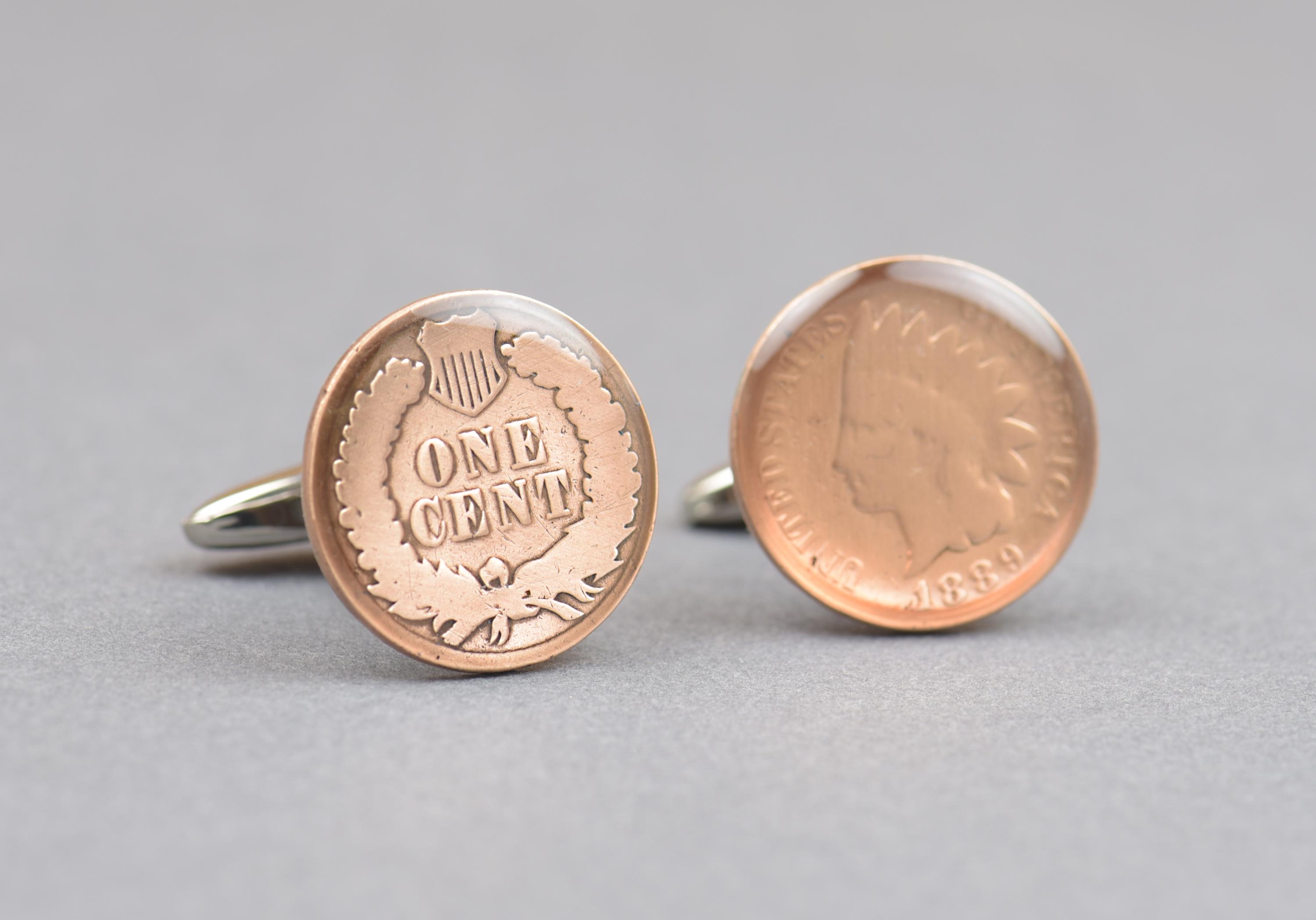 Cent Coin Cufflinks Vintage US Penny: 19th Century Antique Coins, E...