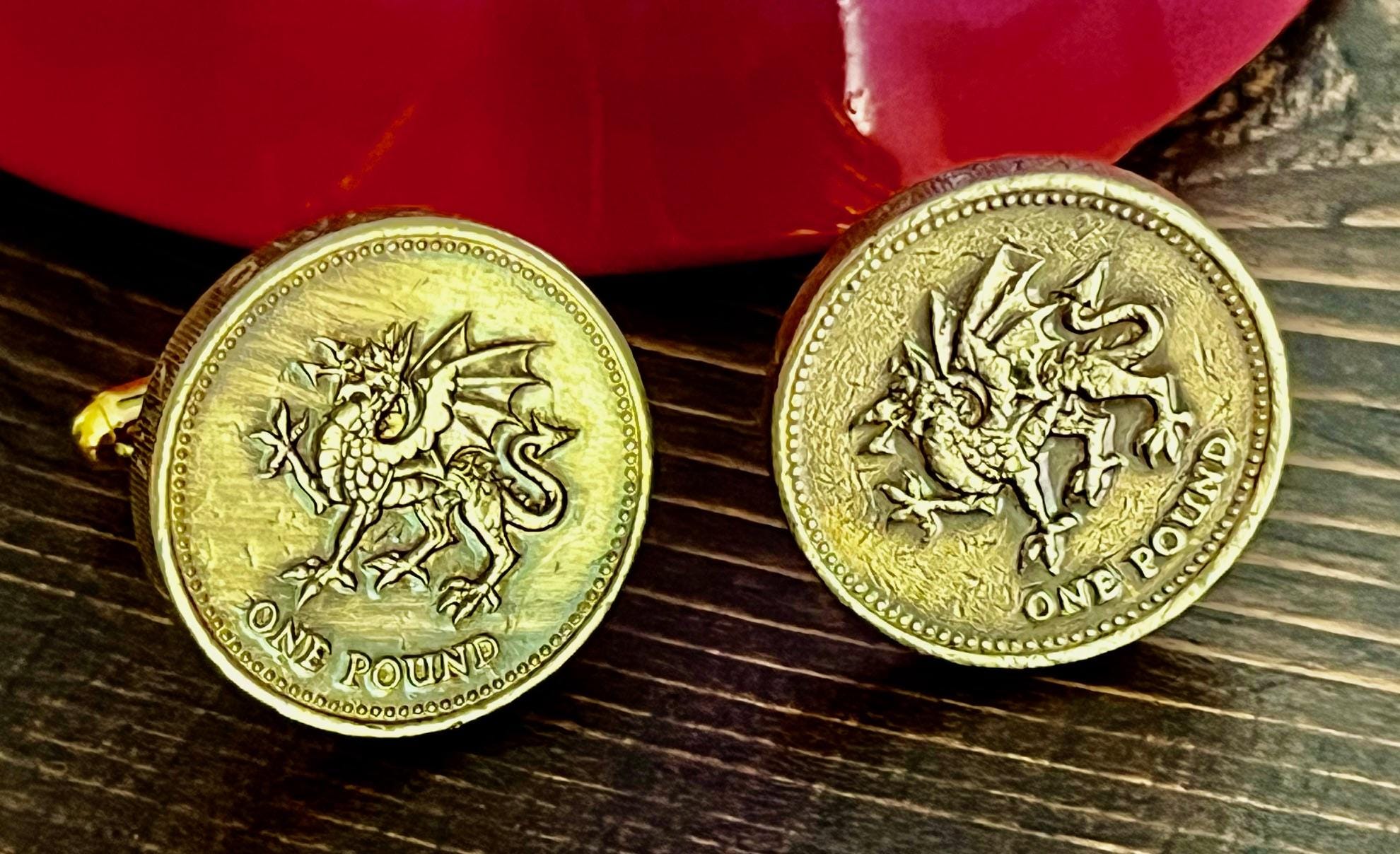 United Kingdom Coin Cufflinks British UK Welsh Dragon 1 Pound Jewel...