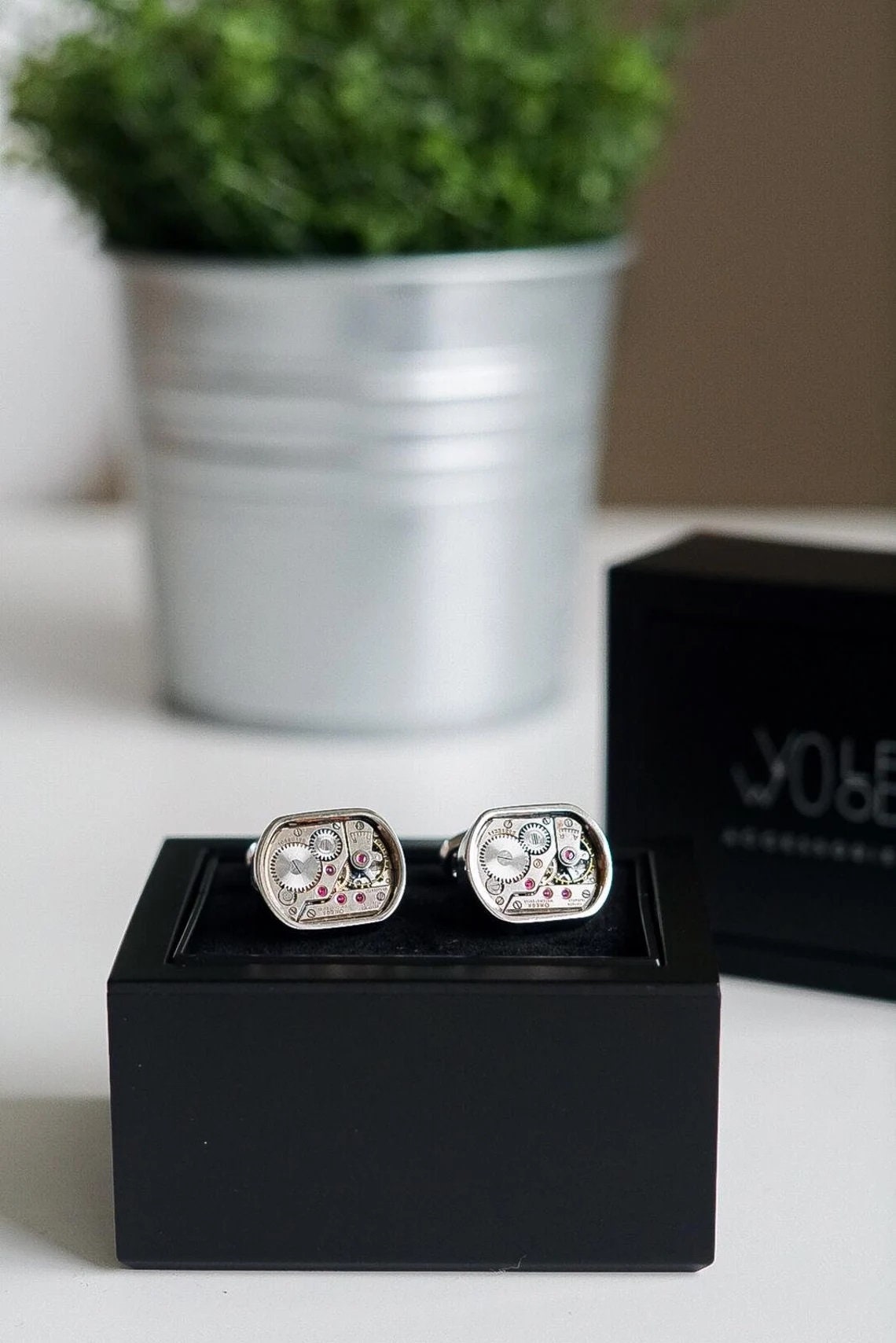 Cufflinks with real Omega non-working watch movements, unique steam...