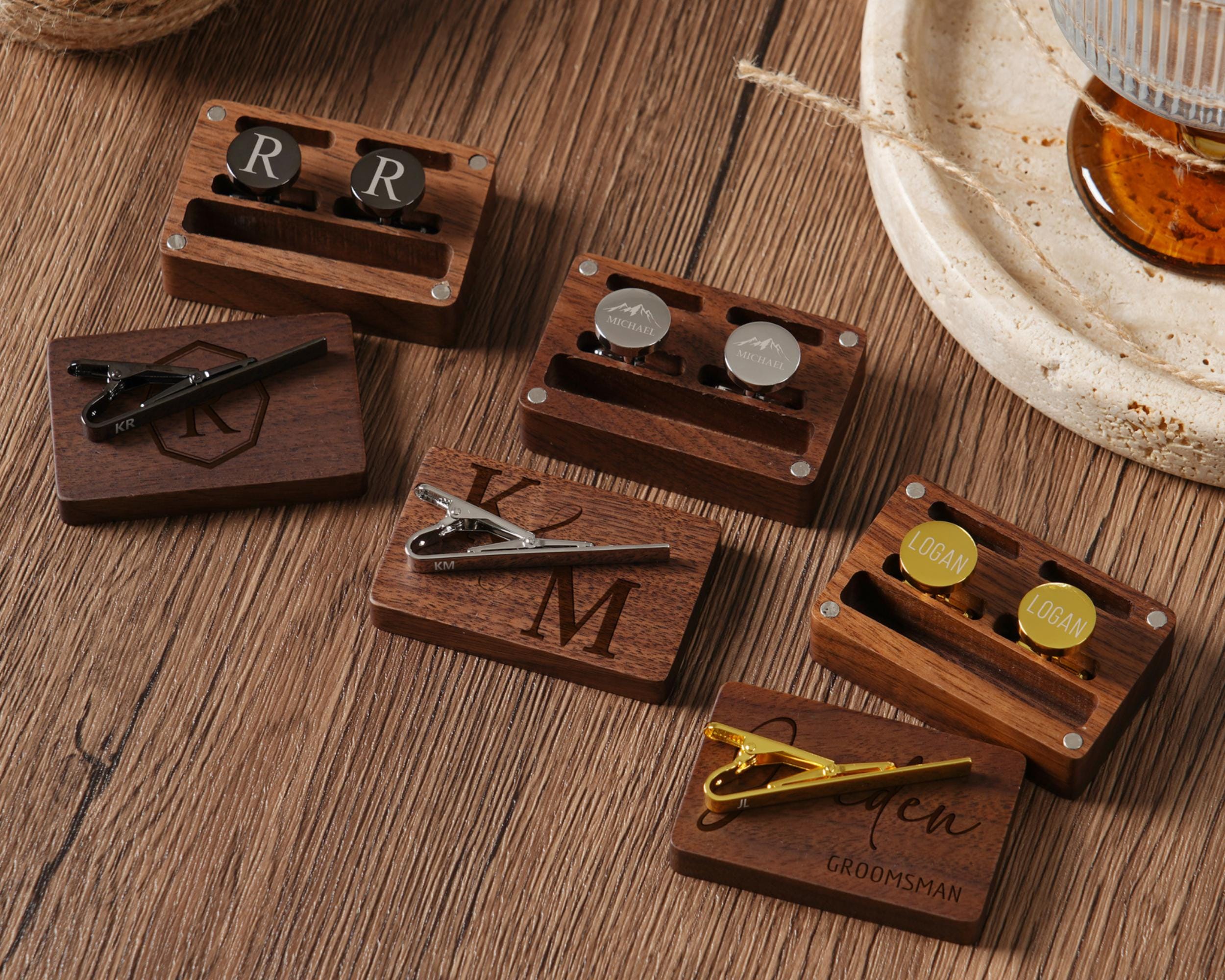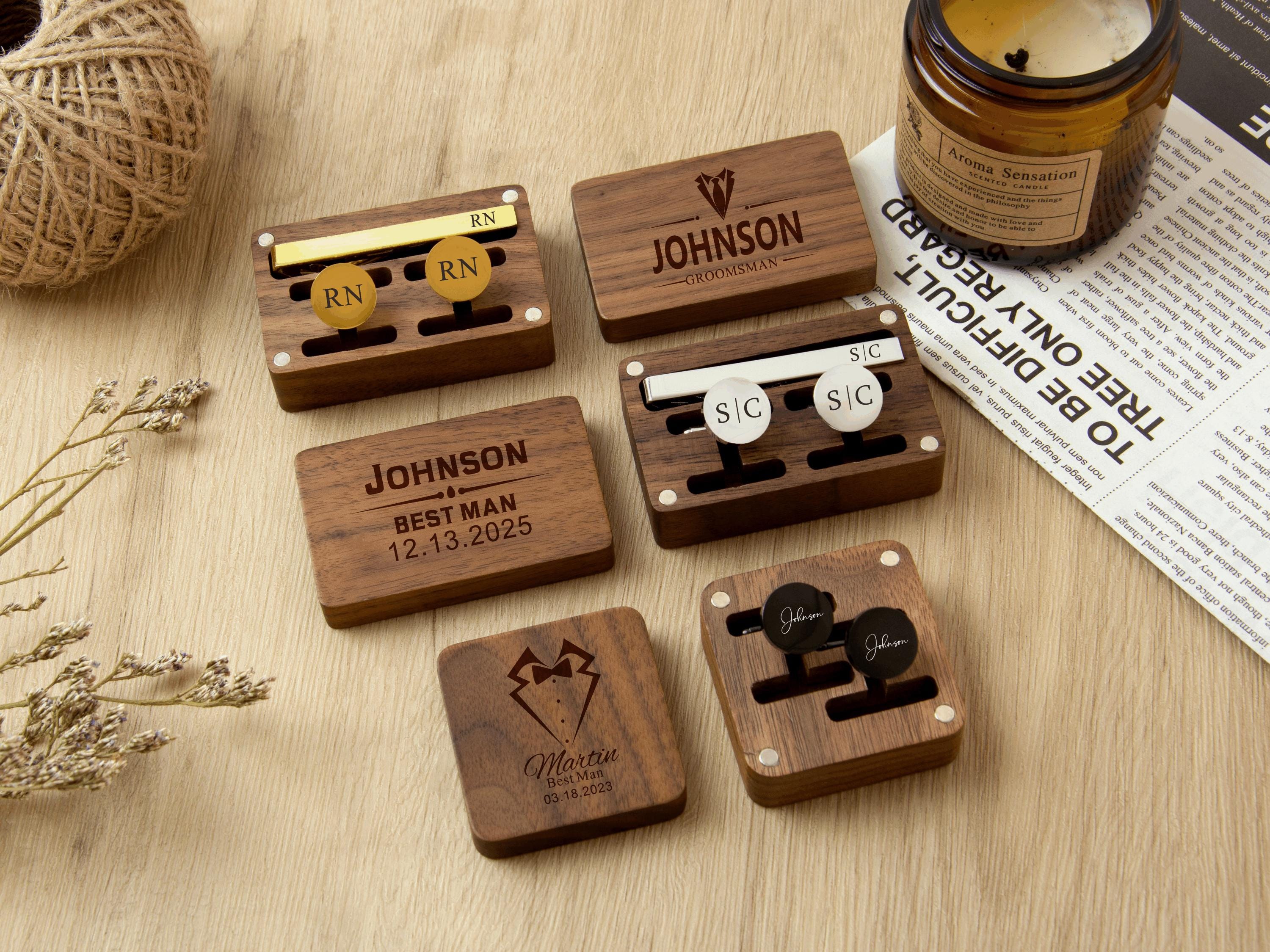 Personalized Wedding Cufflinks Box, Engraved Wooden Cuff links Box,...