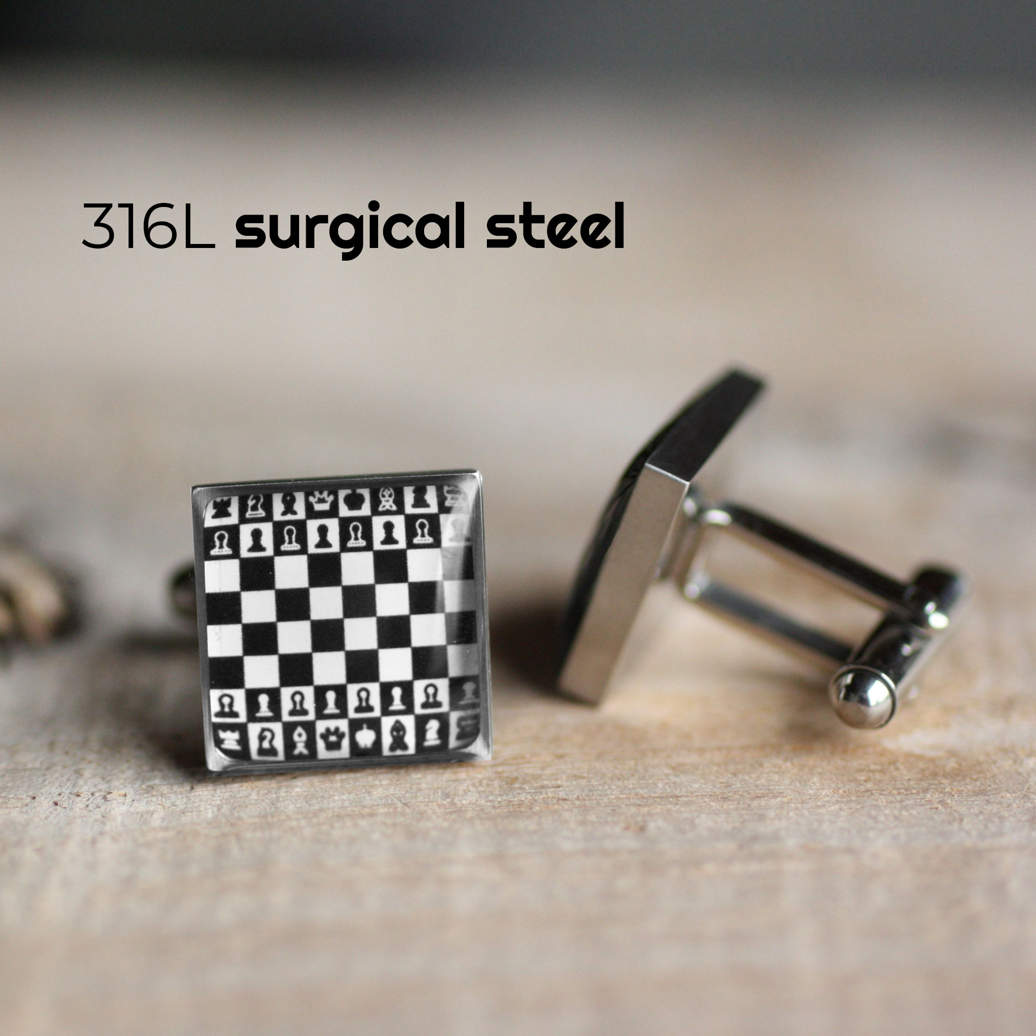Chess stainless steel cufflinks, Chess board chess pattern mens cuf...