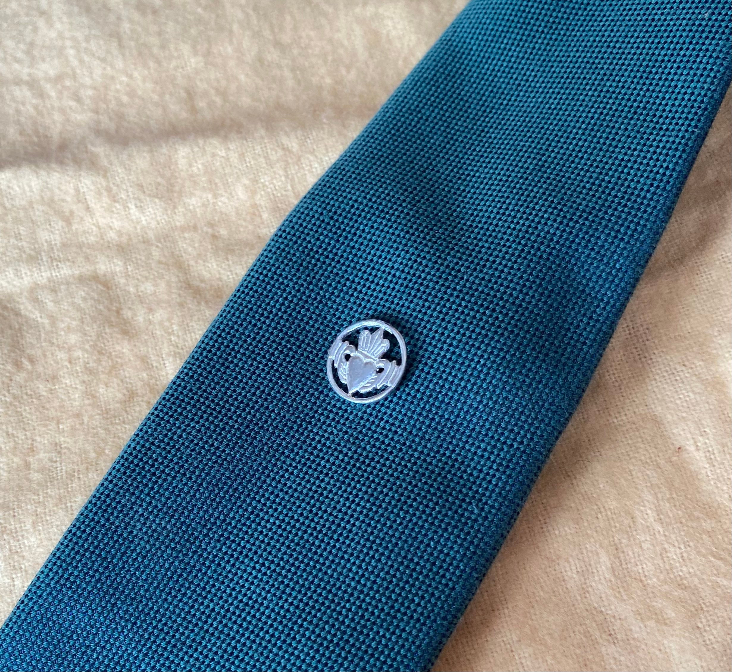 This Sterling silver tie tack is made with a traditional Claddagh design, it has a silver plated cla...