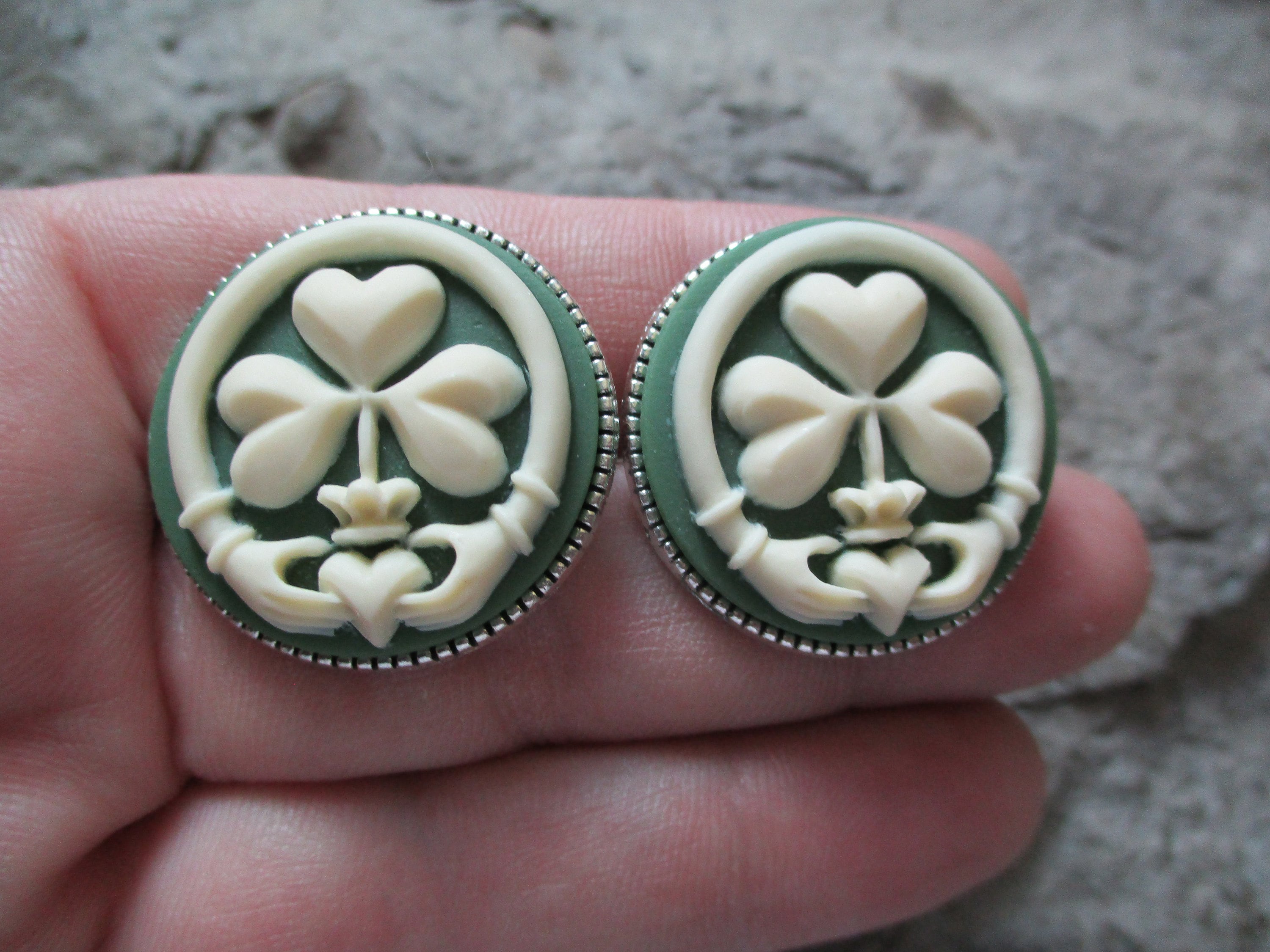 Pair of Cameo Shamrock and Claddagh Cuff Links - Irish - Celtic - C...