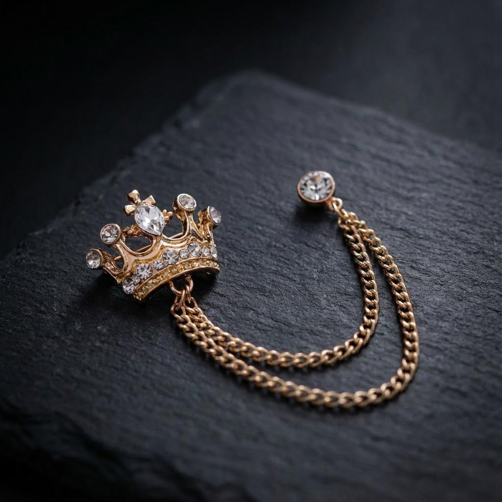 Golden Crown Crystal Chain Brooch,Gold Crown Lapel Pin,Lapel Chain ...
