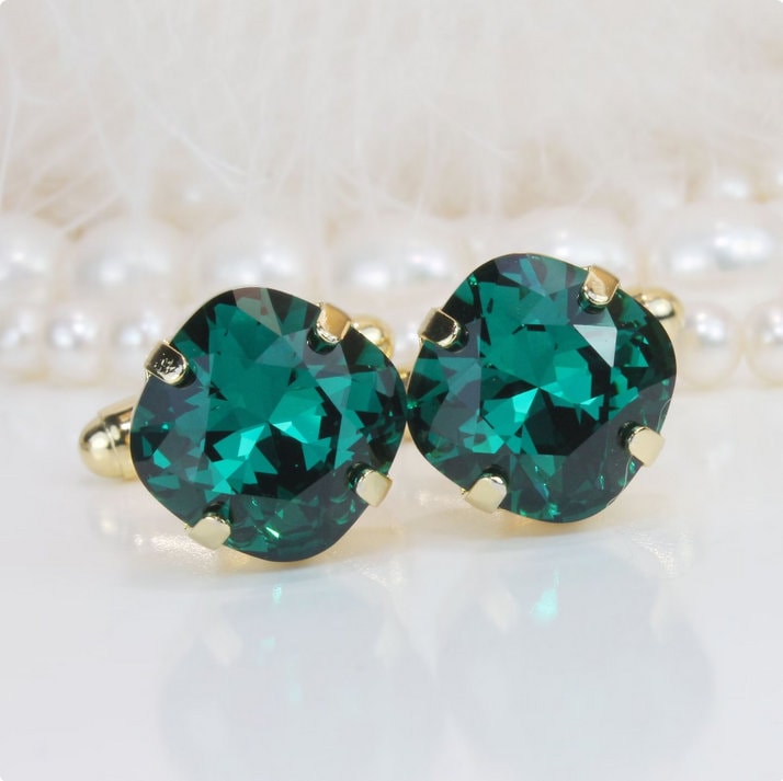 Emerald Cufflinks, Green Cuff Links For Men, Crystal Cufflinks, Bes...