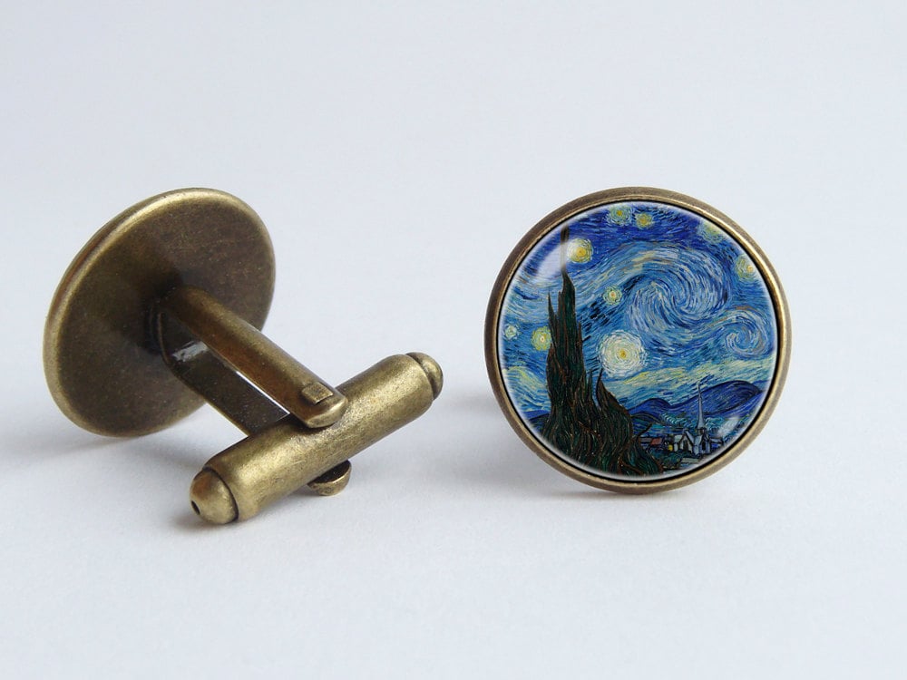 Van Gogh cufflinks Starry Night cuff links Men cuff links Van Gogh ...