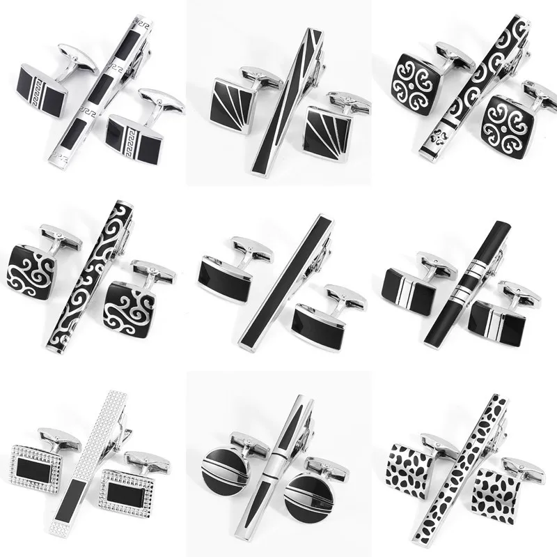 Wholesale Engraved Men Cufflinks and Tie Clips Alloy Metal Cuff Lin...