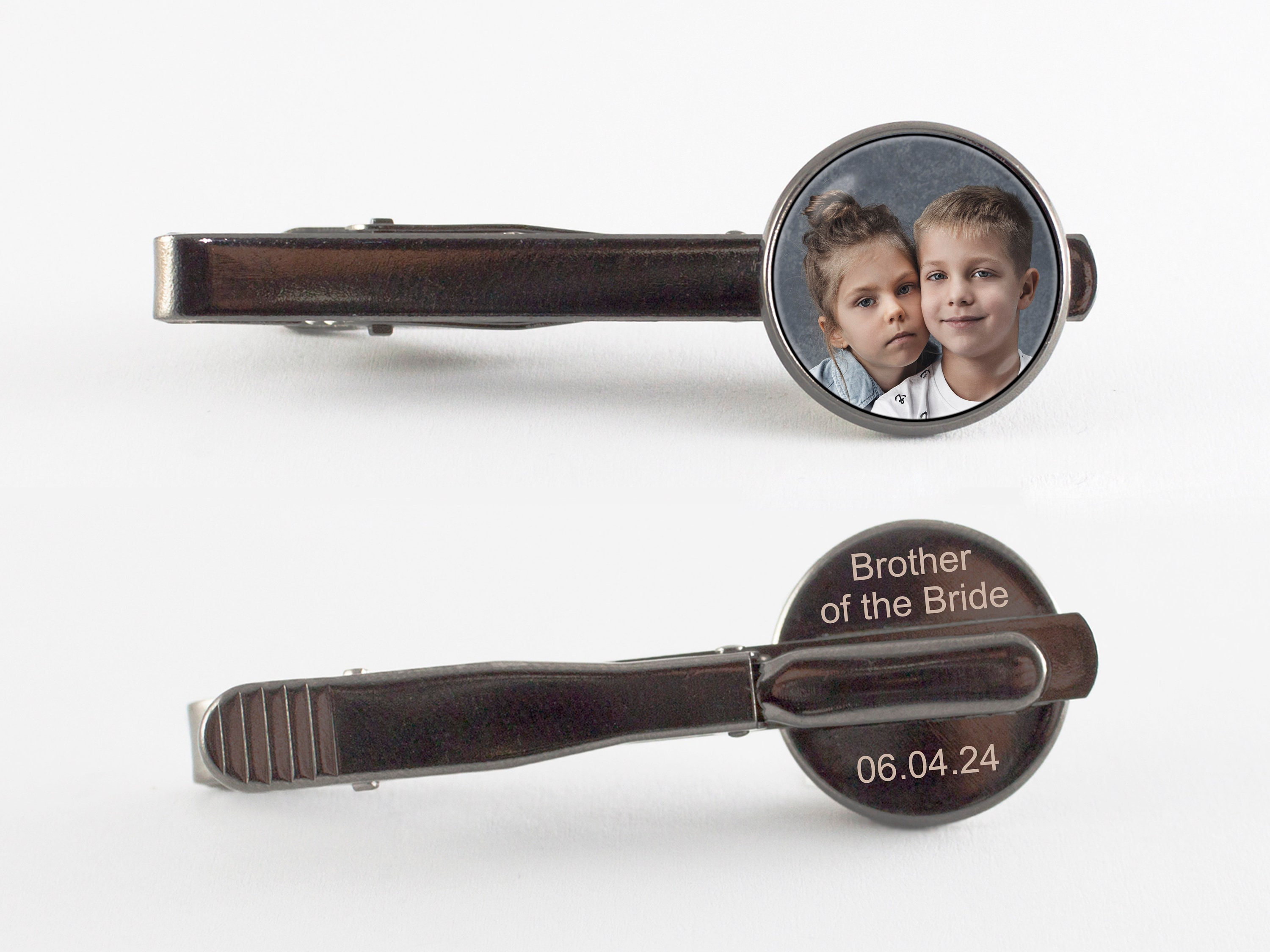 Wedding day Brother of the bride Custom photo Engraved tie clip Per...