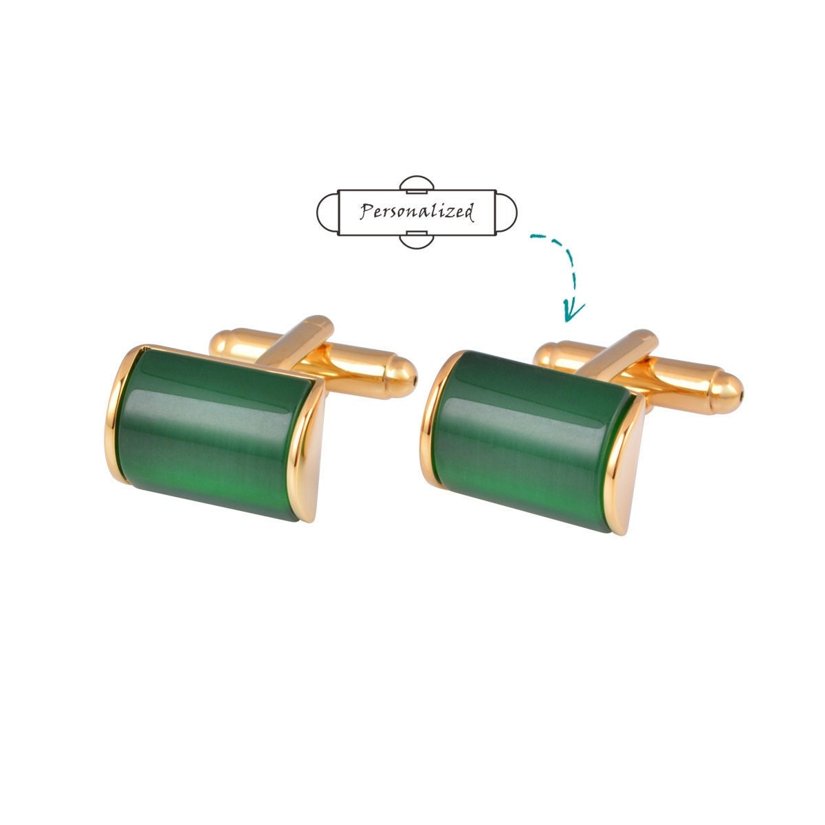Personalized Green Gemstone Cufflinks - Gold or Silver Finish - Cus...