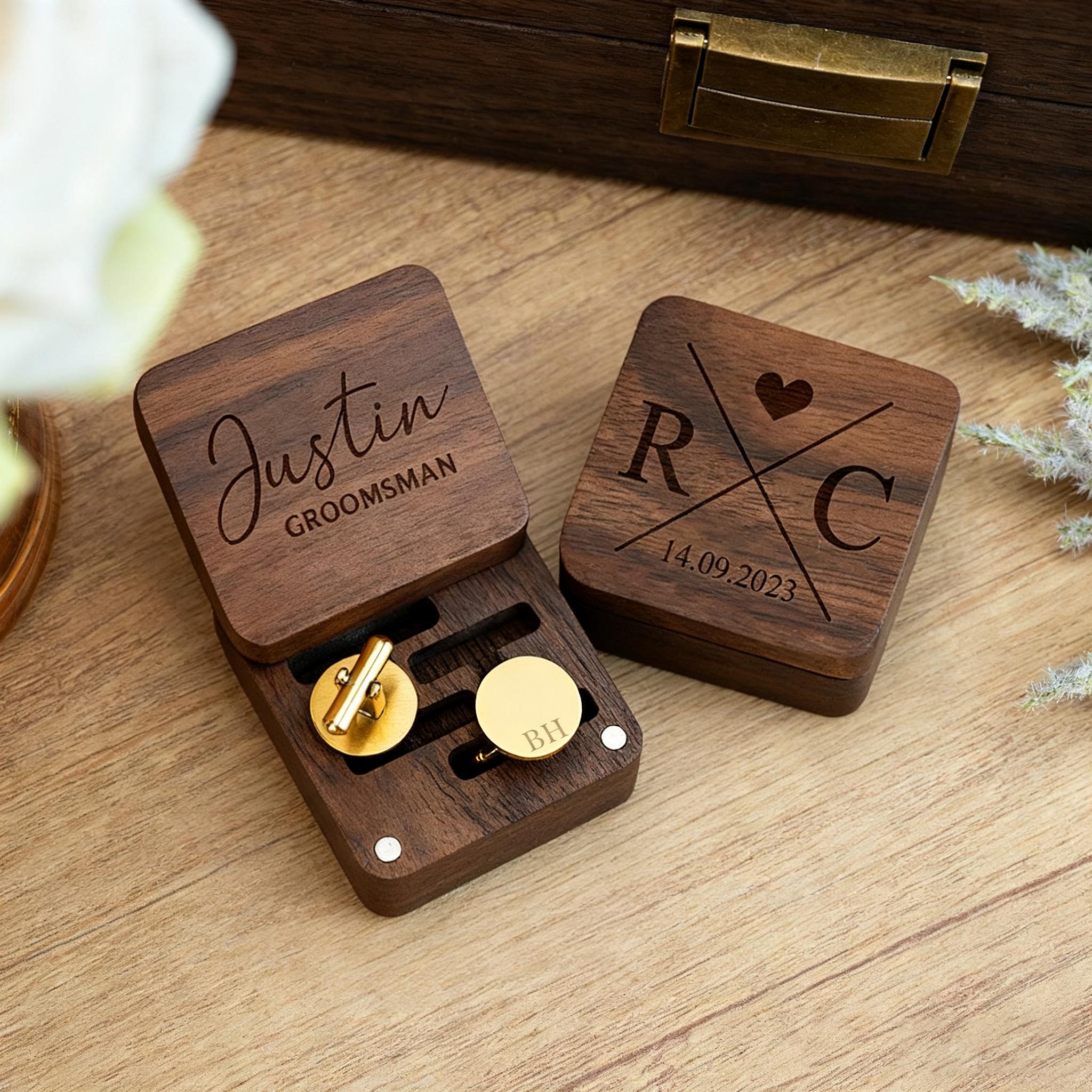 Personalized Metal Cufflinks Set with Wooden Box is the perfect gift for your groomsman, husband, co...