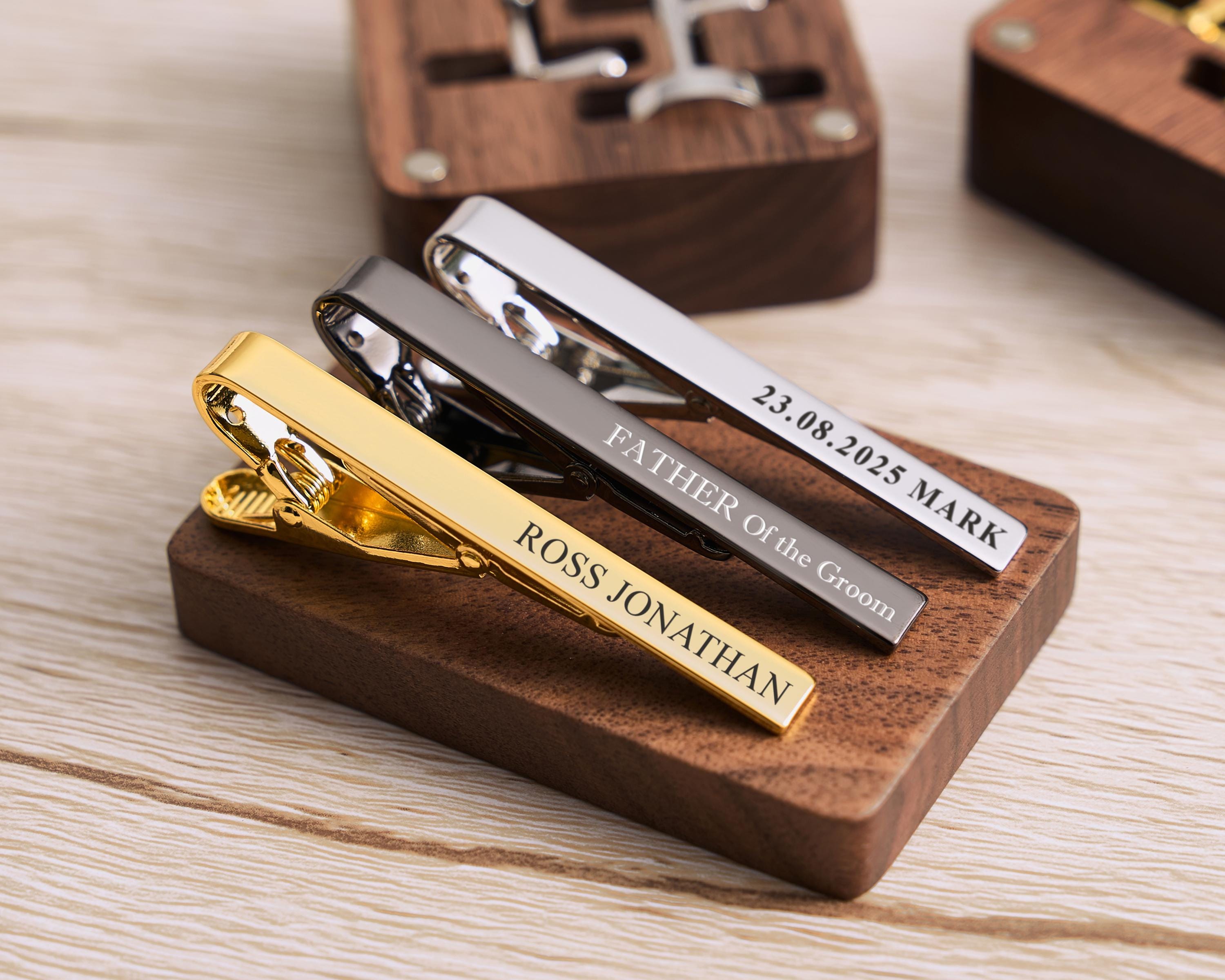 Gold Cufflinks Tie Clip Box, Personalized Groomsmen Gifts, Metal Cu...