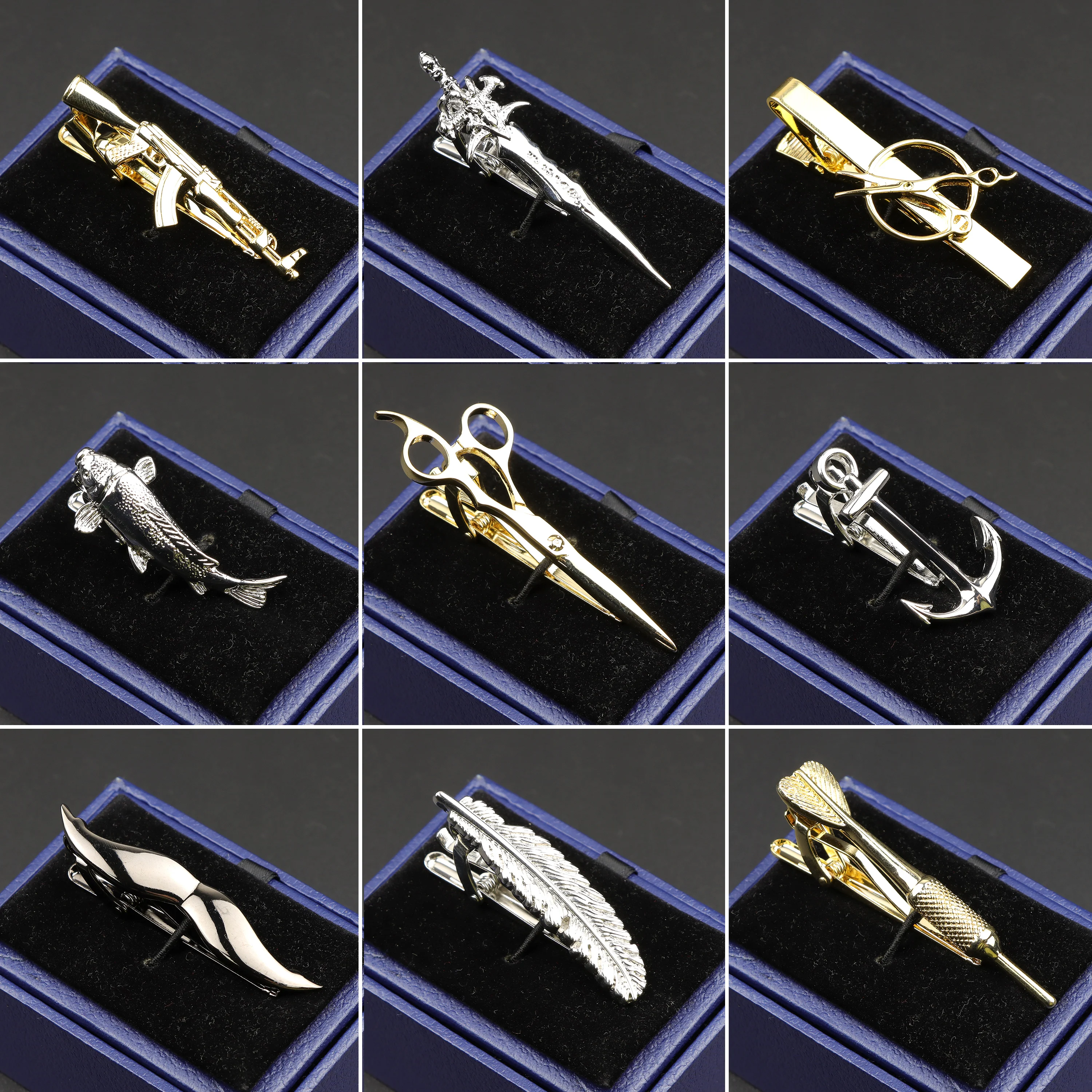 Chrome Stainless Tie Clips For Business Men Scissors Sword Gun Car ...