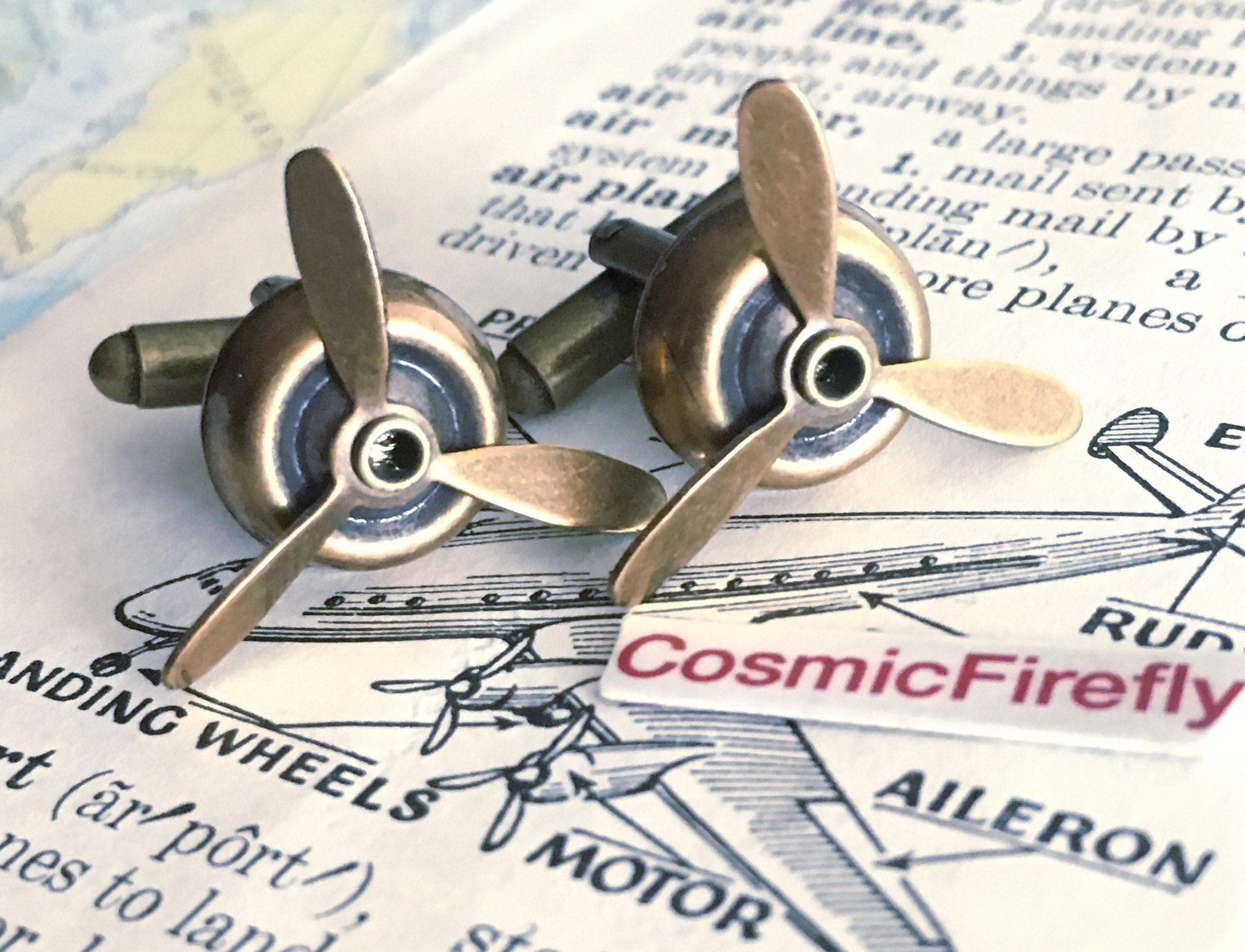 NEW Steampunk Brass Propeller Cufflinks - MADE in USA. FREE Gift Box included! Unisex men's women's ...