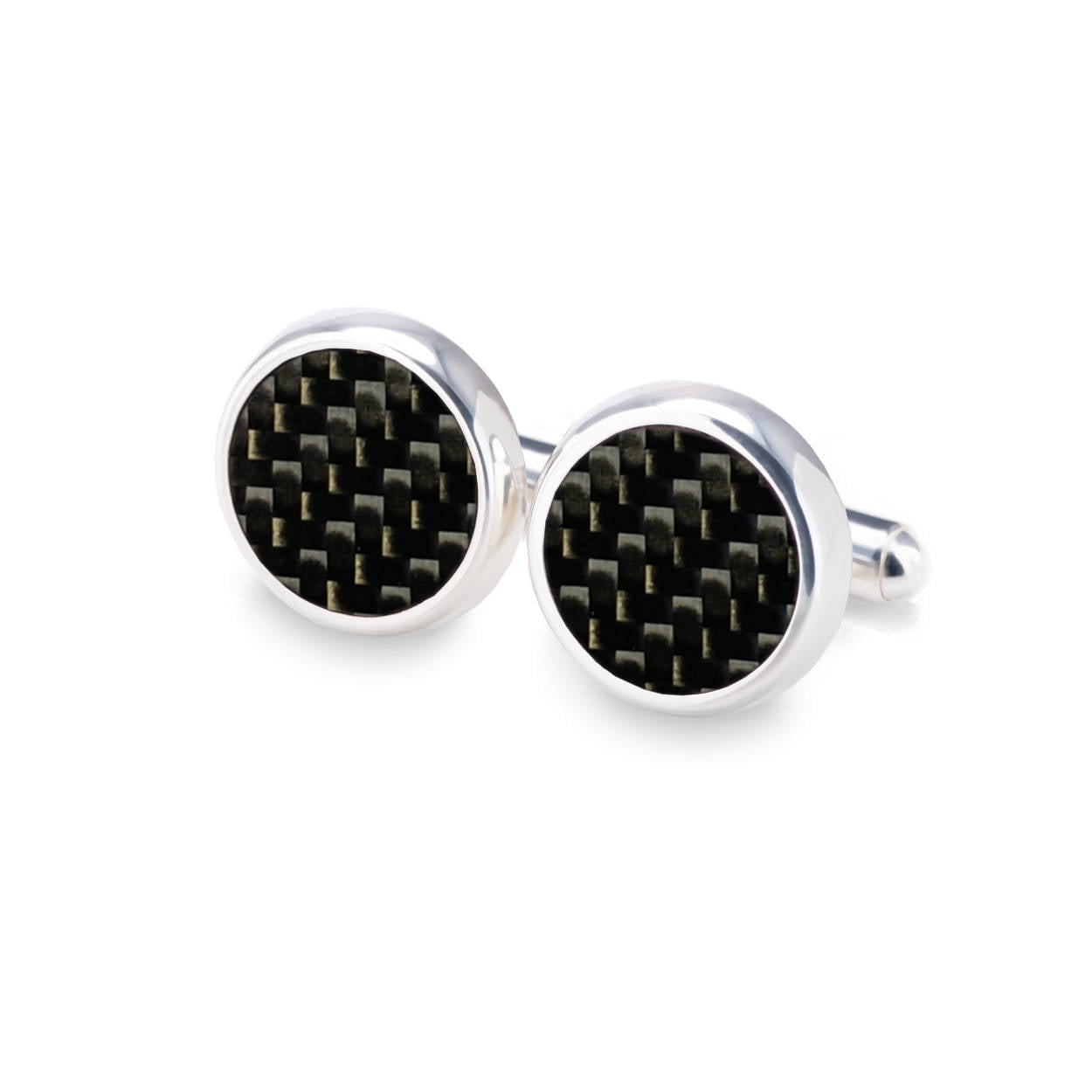 Round Black Carbon Fiber Inlay Cufflinks Carbon Fiber Mens Cufflink...