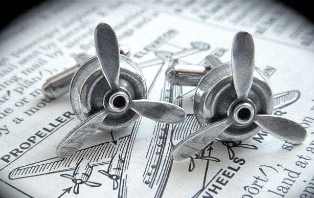 "Steampunk Propeller Cufflinks MADE IN USA Spins. Metal silver plated antiqued finish. FREE Gif...
