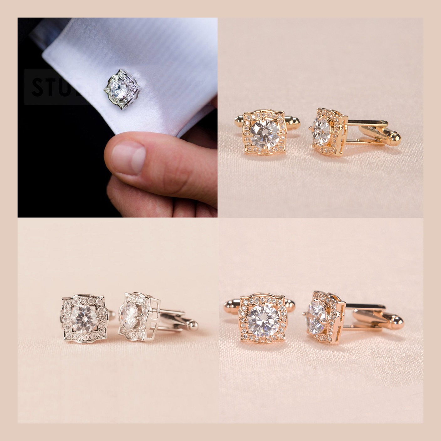 Cufflinks, Rose Gold Mens cufflinks, Crystal cufflinks, Gift for Me...