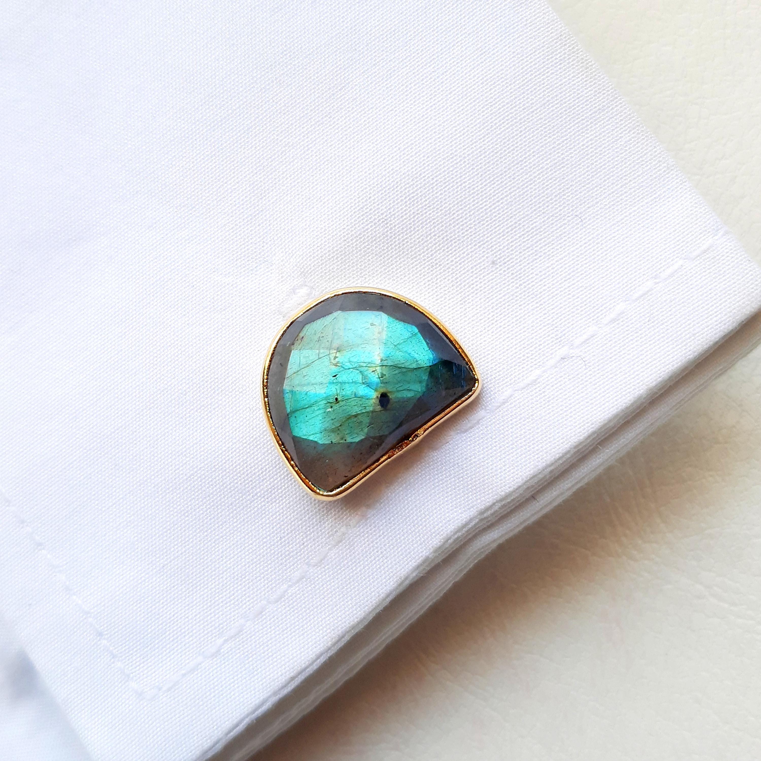 Natural Labradorite Gemstone Cufflinks, Gold Vermeil Cufflinks, Par...