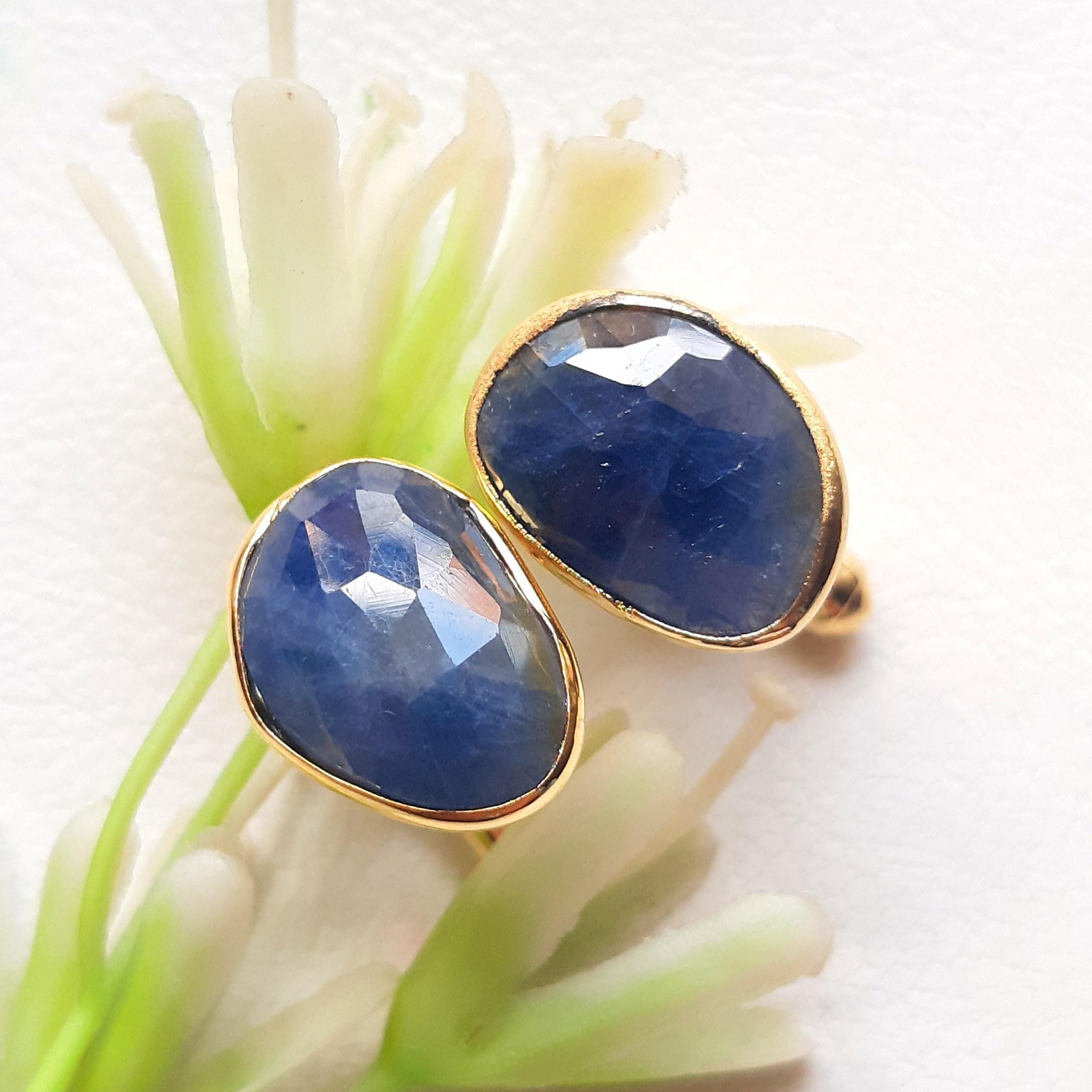Natural Blue Sapphire Gemstone Cufflinks, Gold Vermeil Cufflinks, Gemstone Cufflink, Men's Cufflinks...