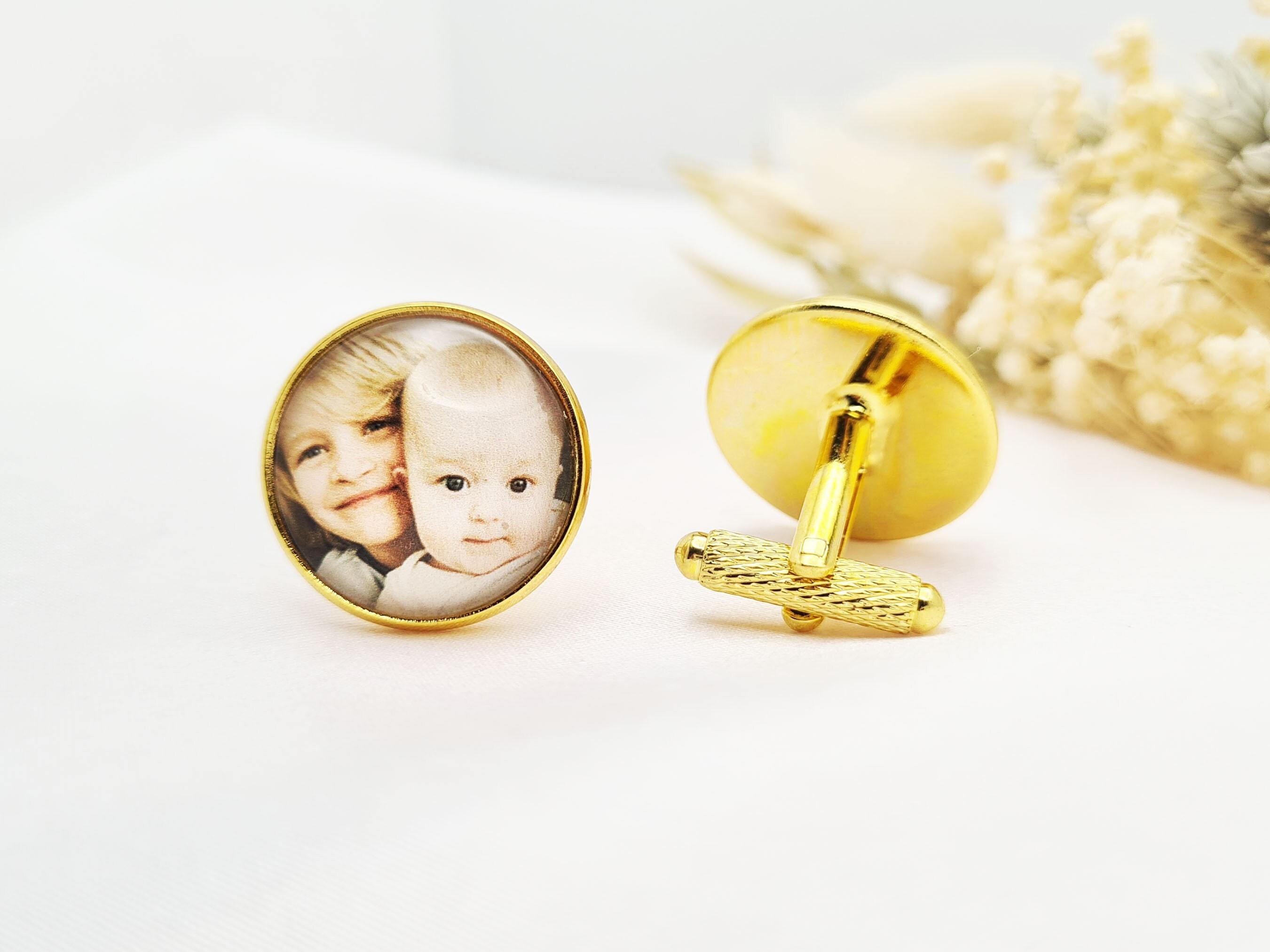 Photo Cufflinks In Gold, Personalised wedding gifts, Gift for Dad, ...