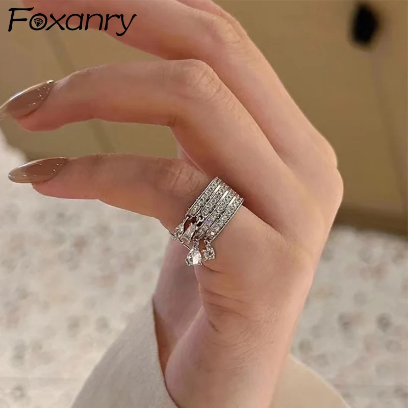 Foxanry Silver Color Sparkling Zircon Cuff Rings For Women Girls Fashion Personality Simple Temperam...