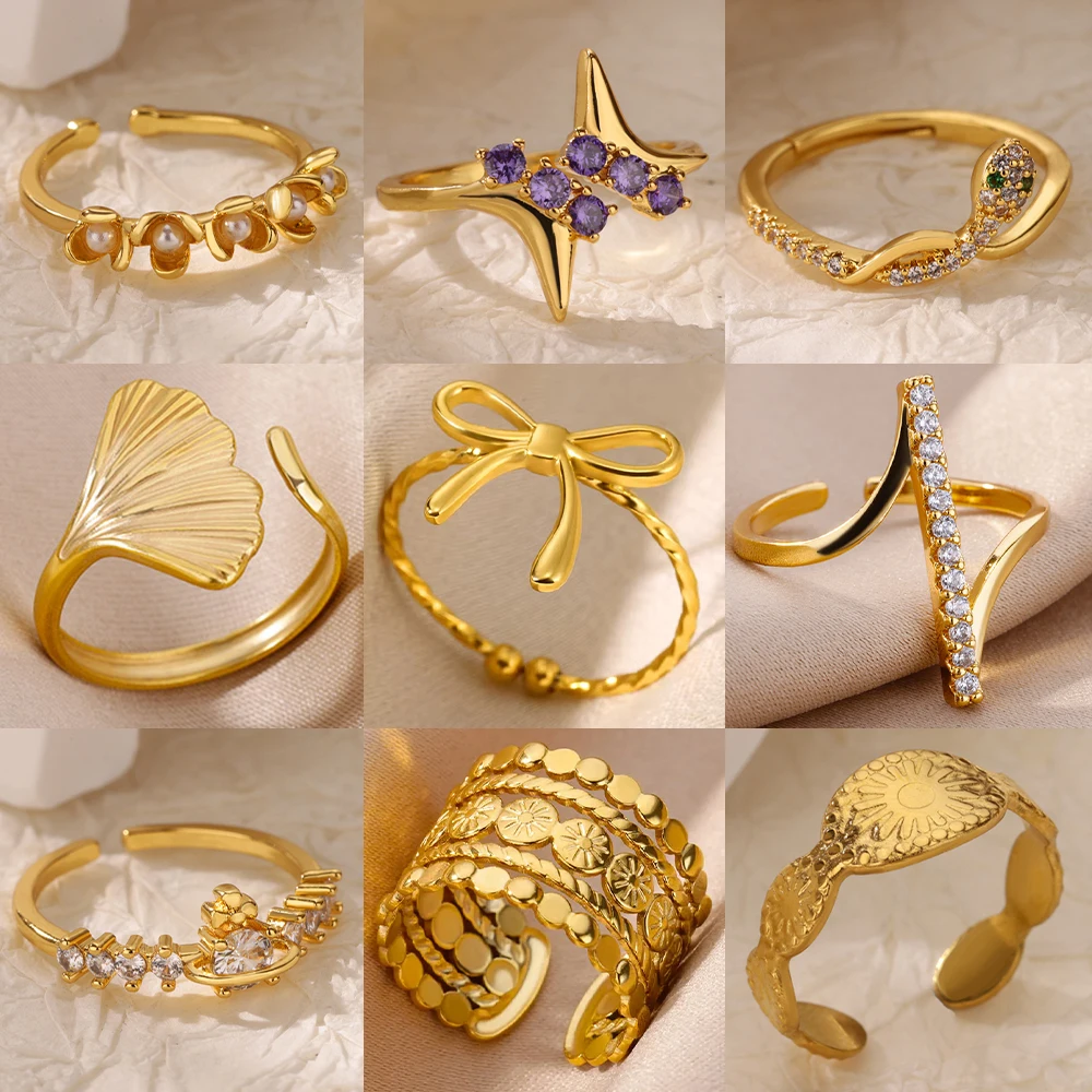 Stainless Steel Bow Tie Mermaid Snake Rings Dainty Zircon Adjustabl...