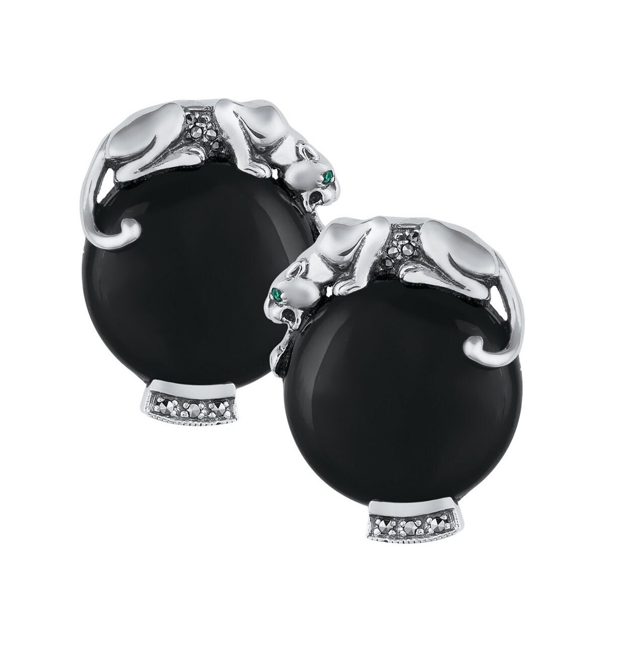 Panther Cufflinks Art Deco Style 925 Sterling Silver English Hallmarks Set With Black Onyx Marcasite...
