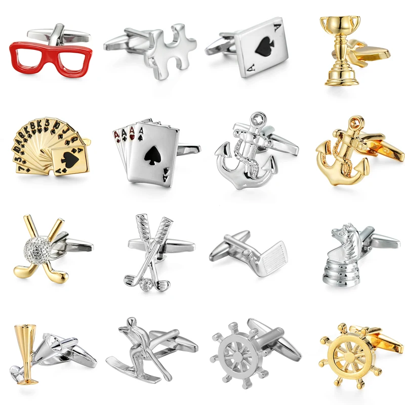 Fashionable men's French shirt cufflinks high-end Sport Golf Chess Dice Poker cuffs button wedding s...